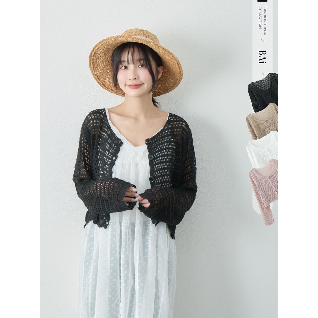 BAi白媽媽 勾織開釦外套/鏤空長袖開衫 空調衫 薄款外套 披肩外搭-台灣現貨 隔日到貨【350161】藍透(18)|白_透(01)|黑_透(02)|奶咖_透(11)|粉_透(13)BAi白媽媽 品牌旗艦店