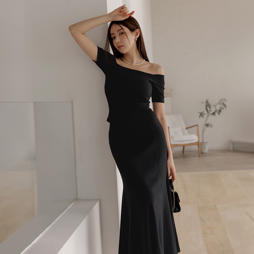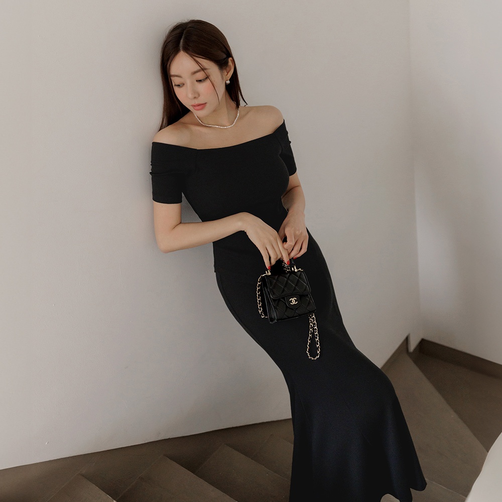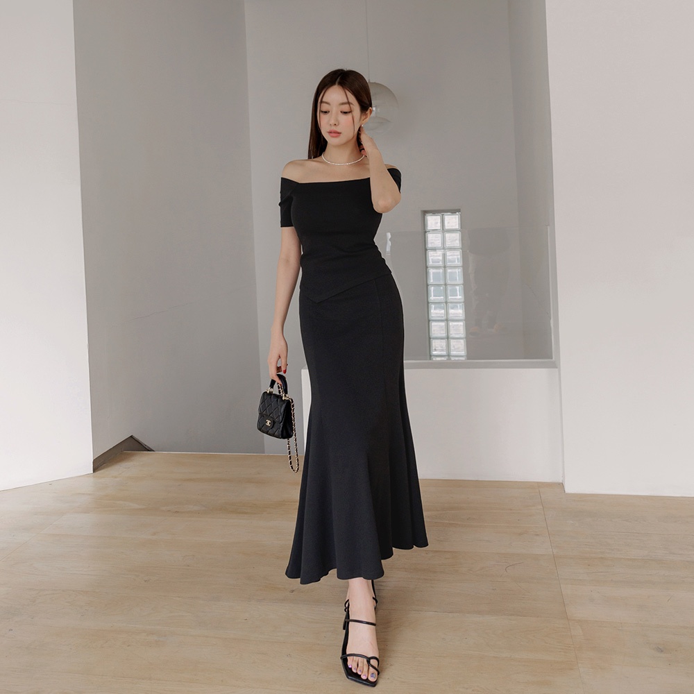 CHIC A SPACE 平口針織魚尾長裙套裝(附胸墊)(黑/杏) 女裝 現貨黑,S|黑,M|黑,L|杏,S|杏,M|杏,LIndividual SetsAIR SPACE
