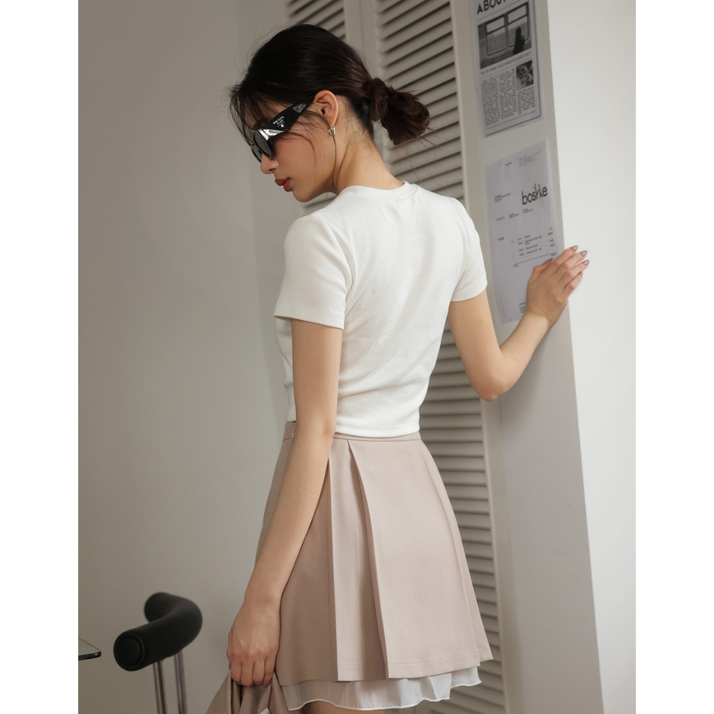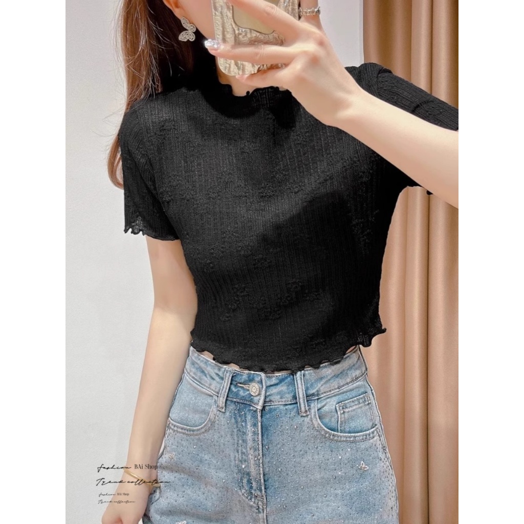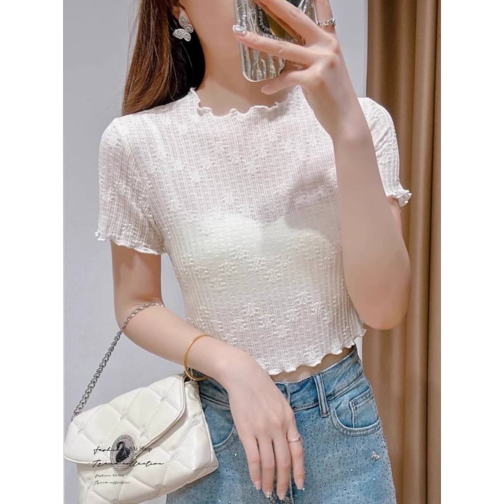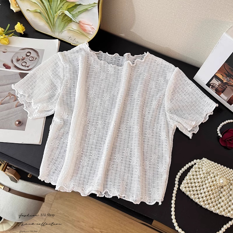 BAi白媽媽 蕾絲短版T/木耳邊內搭網紗-台灣現貨 隔日到貨【350415】白_透(01)|黑_透(02)|杏_透(22)T-shirtsBAi白媽媽 品牌旗艦店