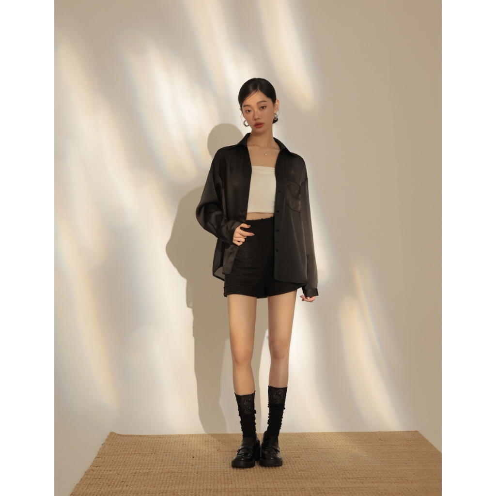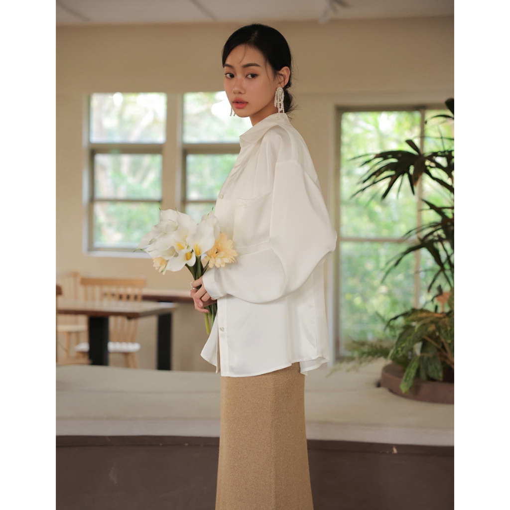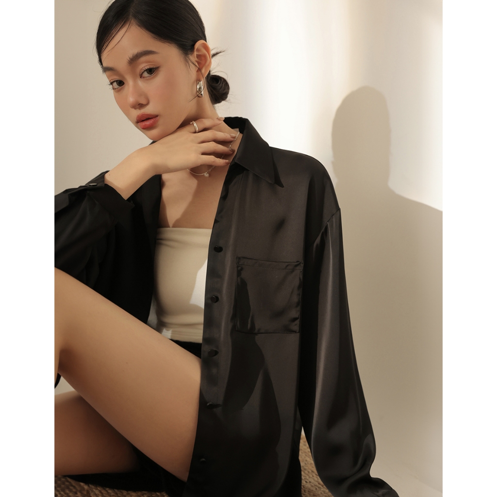 CHIC A SPACE 輕奢緞面後開衩襯衫(黑/白) 女裝 現貨黑,S|黑,M|黑,L|白,S|白,M|白,LShirts & BlousesAIR SPACE
