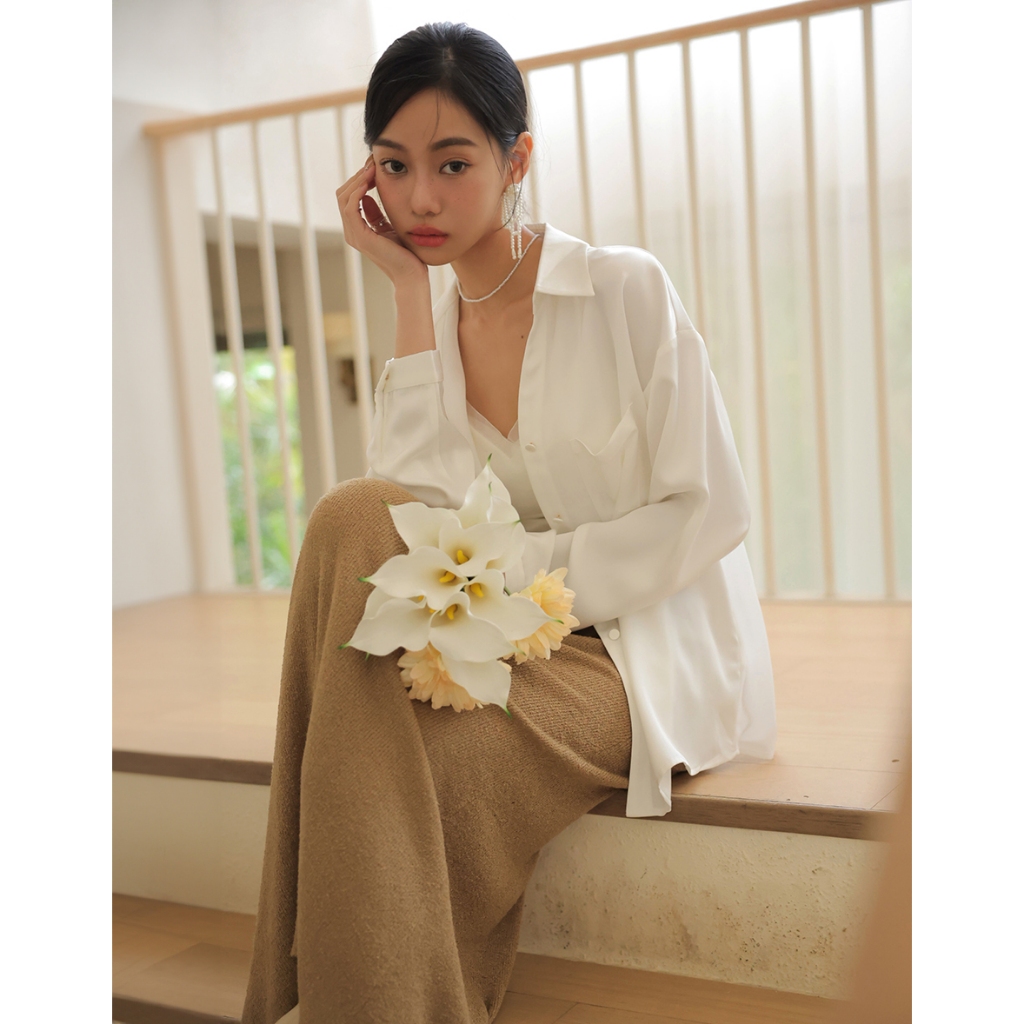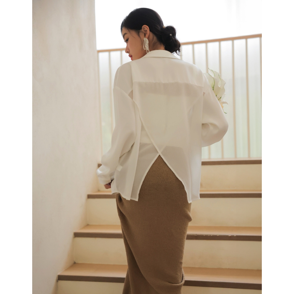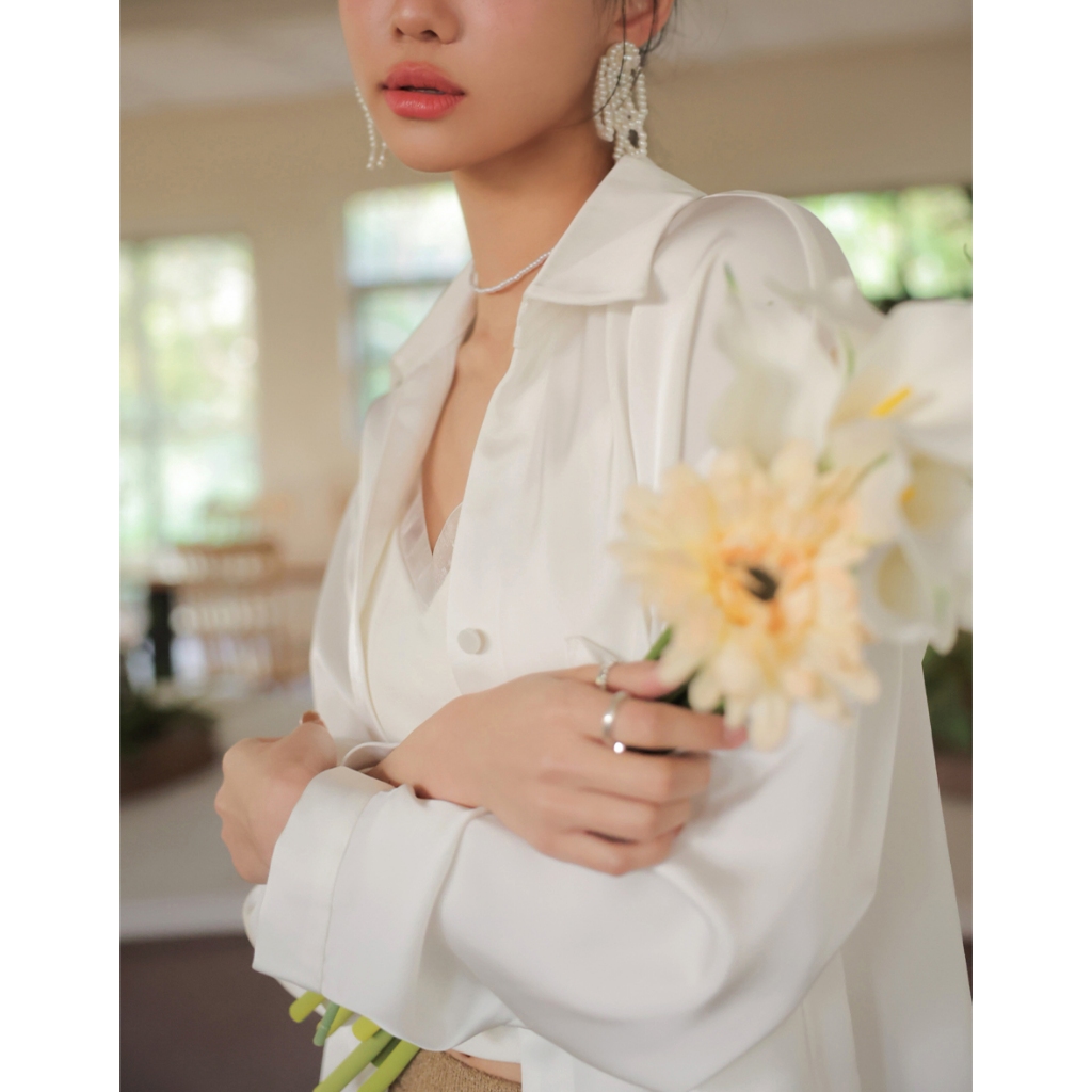 CHIC A SPACE 輕奢緞面後開衩襯衫(黑/白) 女裝 現貨黑,S|黑,M|黑,L|白,S|白,M|白,LShirts & BlousesAIR SPACE