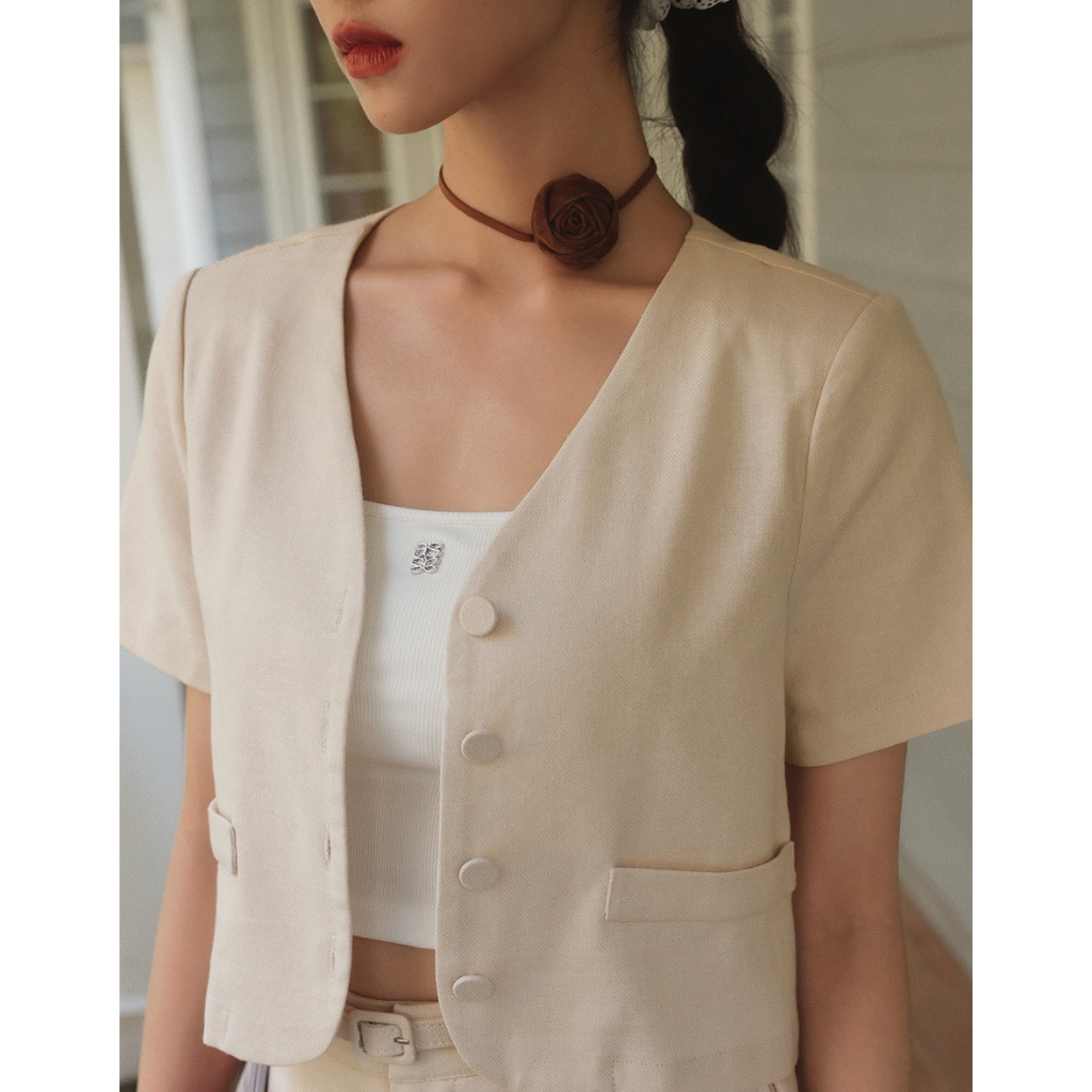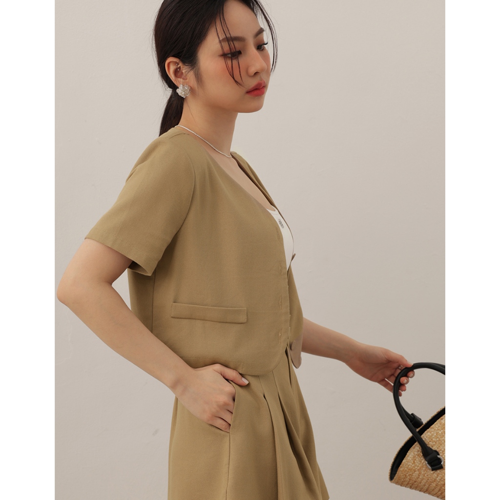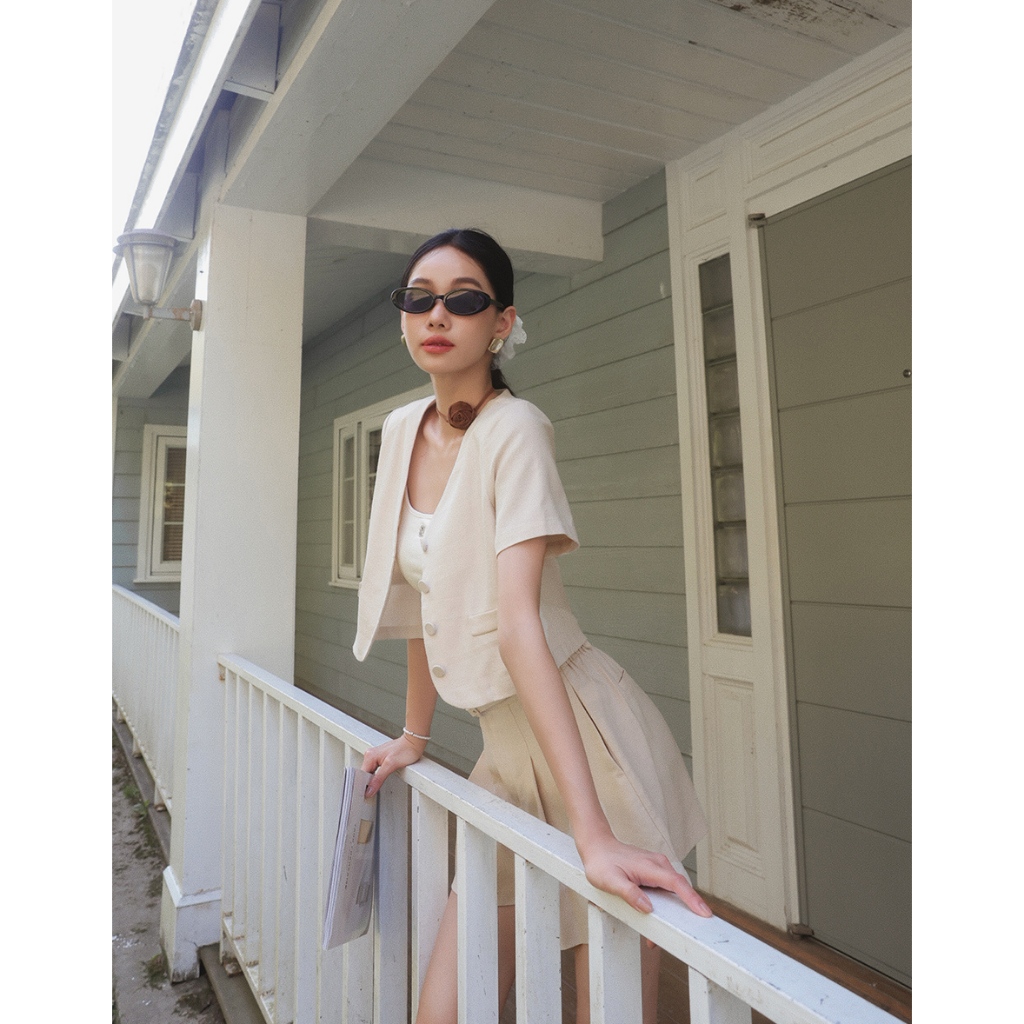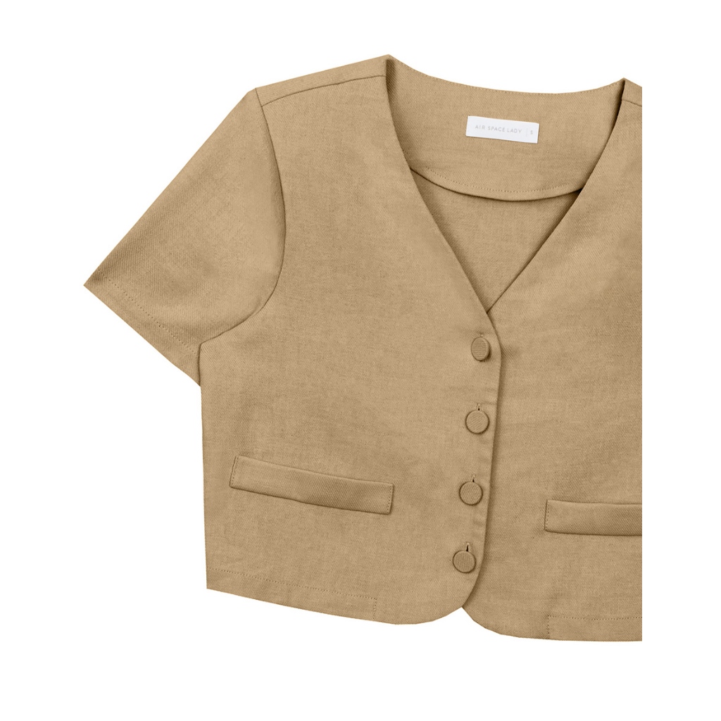 AIR SPACE LADY 氣質簡約短袖外套(附墊肩)(杏/咖啡) 女裝 現貨杏,S|杏,M|杏,L|咖啡,S|咖啡,M|咖啡,LJacketsAIR SPACE