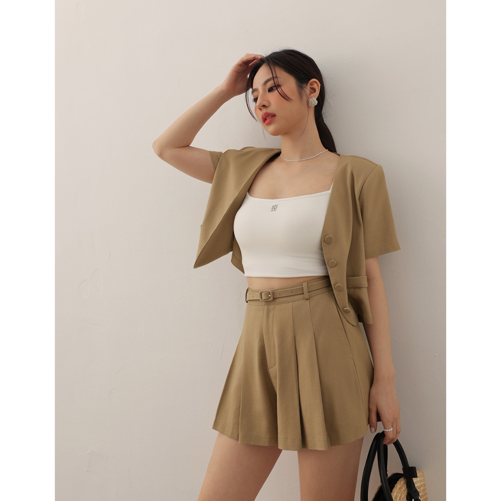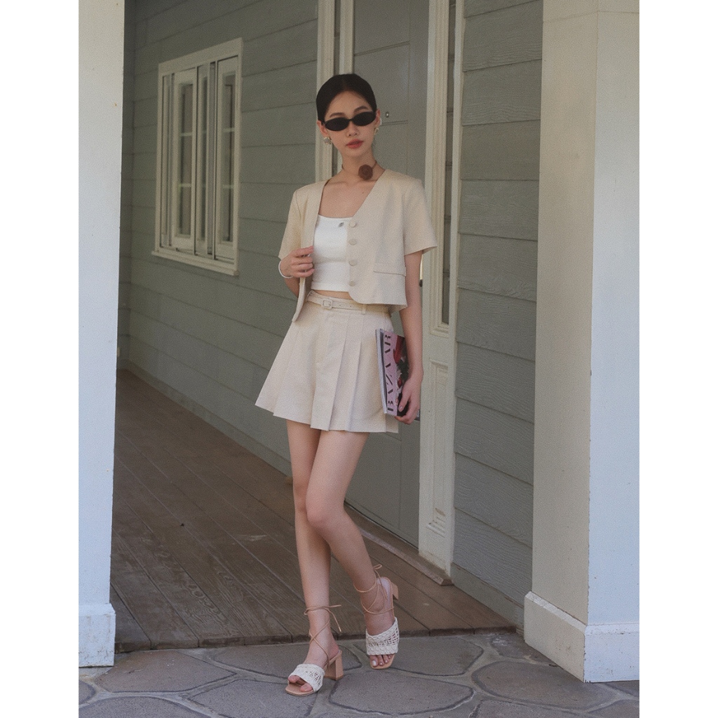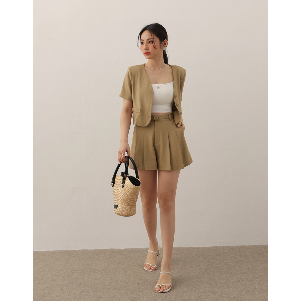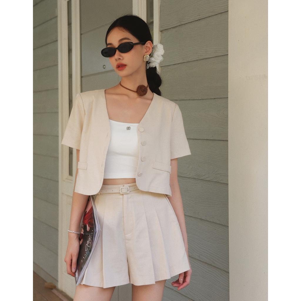 AIR SPACE LADY 氣質簡約短袖外套(附墊肩)(杏/咖啡) 女裝 現貨杏,S|杏,M|杏,L|咖啡,S|咖啡,M|咖啡,LJacketsAIR SPACE