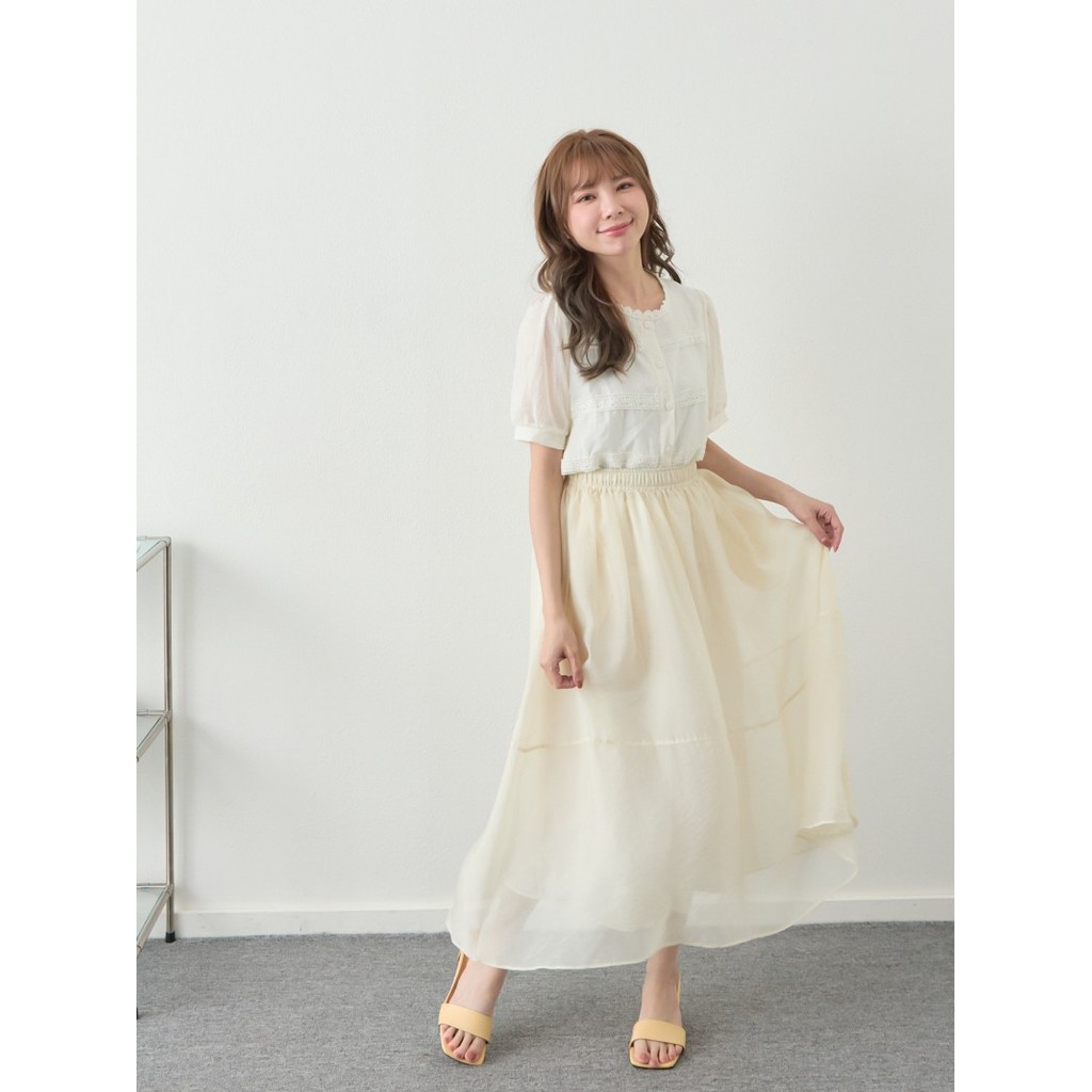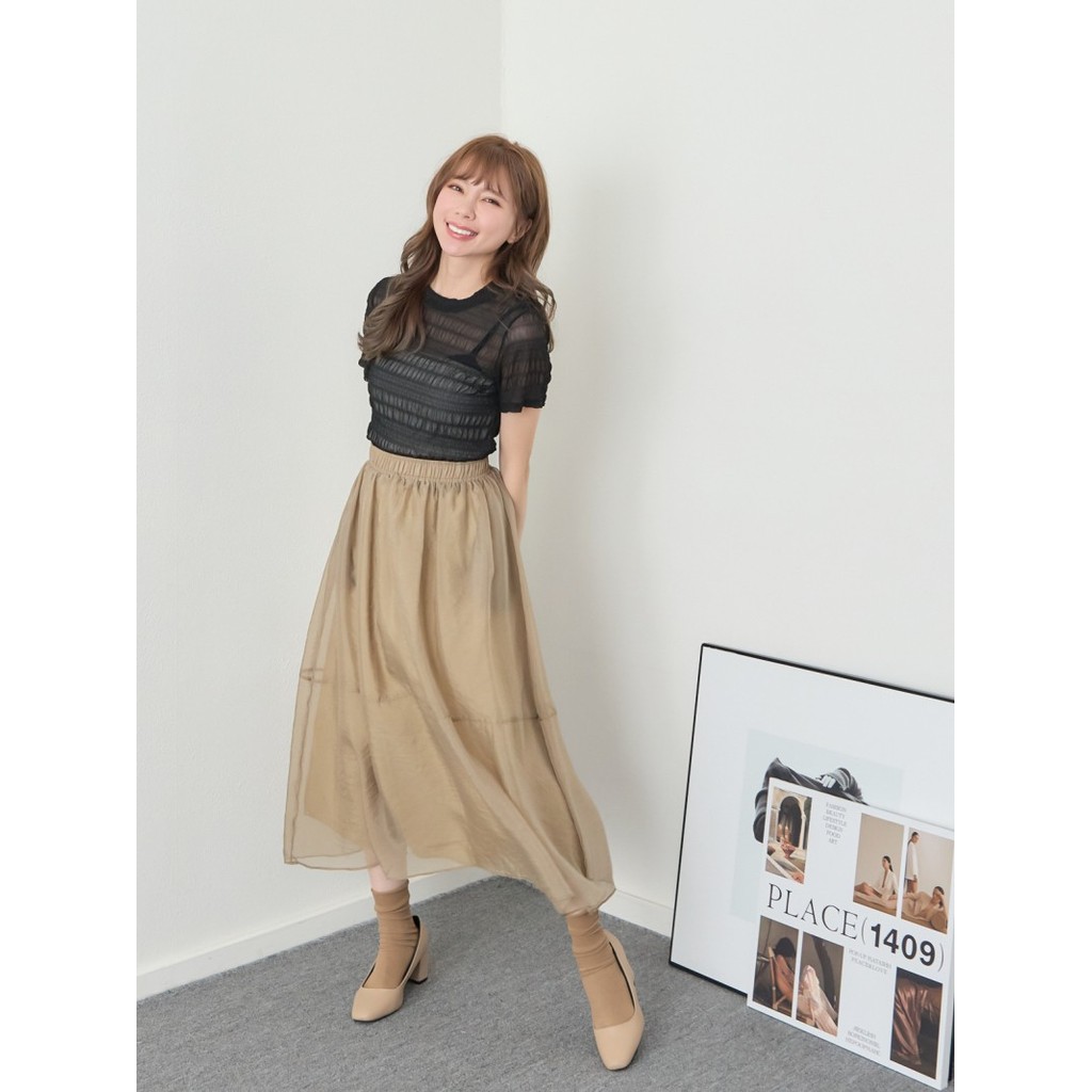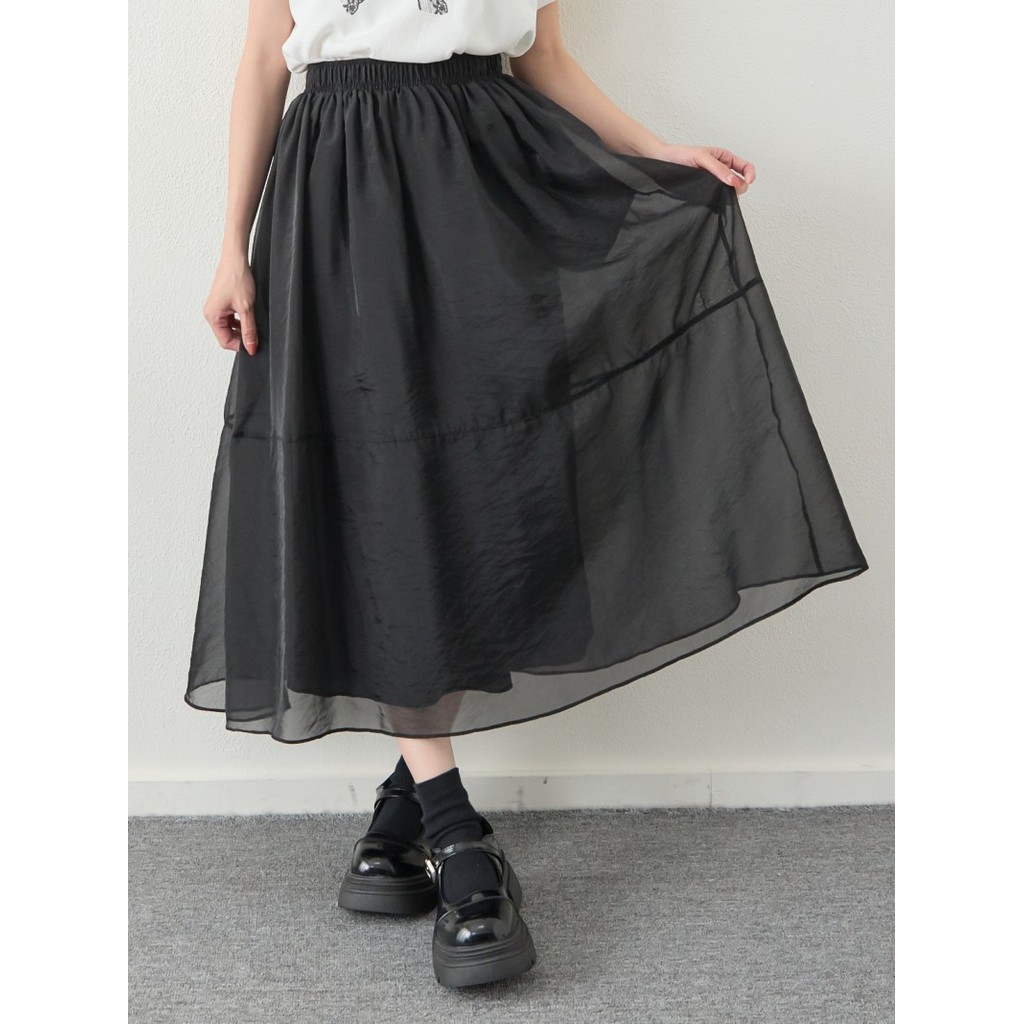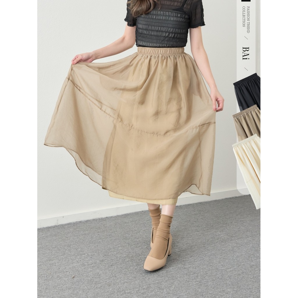 BAi白媽媽 皺皺歐根紗裙/鬆緊腰拼接澎澎長裙-台灣現貨 隔日到貨【350306】黑(02)|卡(11)|杏(22)BAi白媽媽 品牌旗艦店