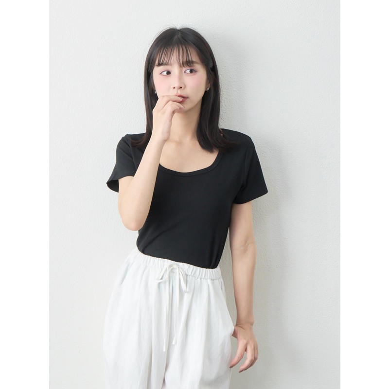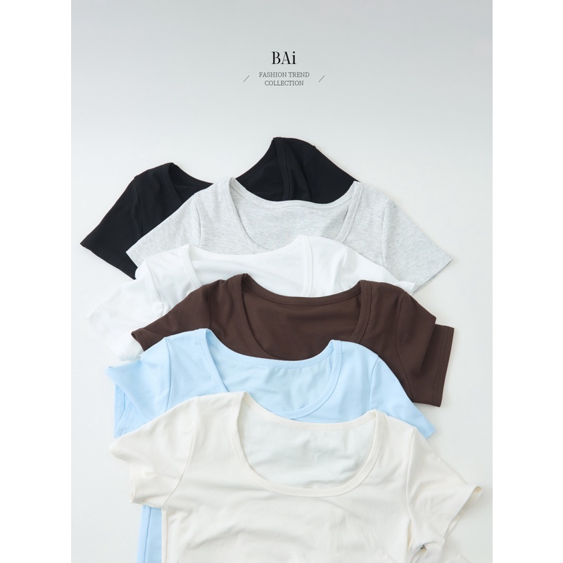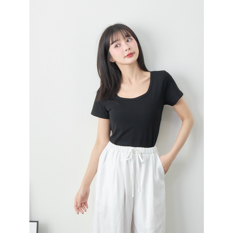 BAi白媽媽 方領正肩短袖T恤/素面棉質上衣-台灣現貨 隔日到貨【350289】