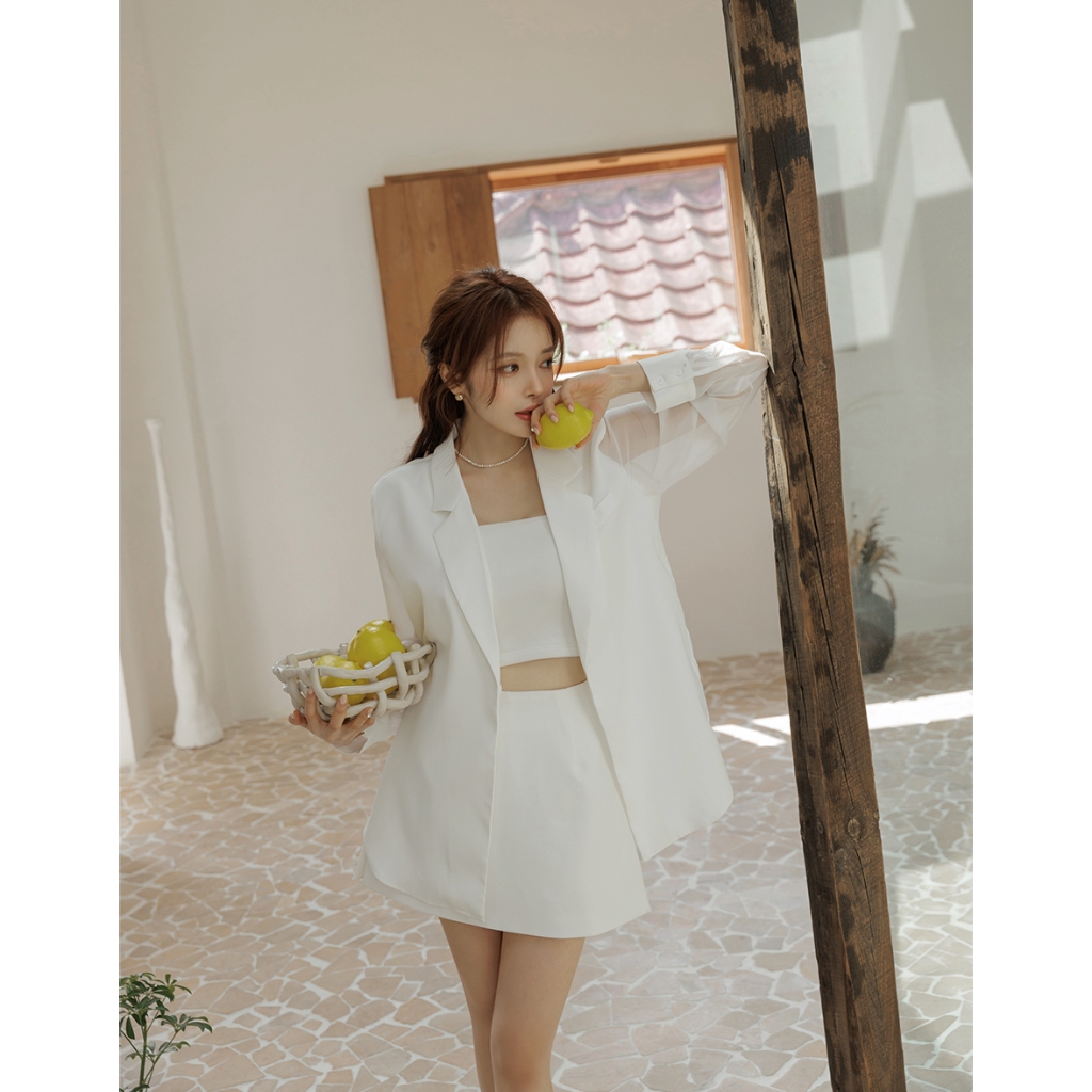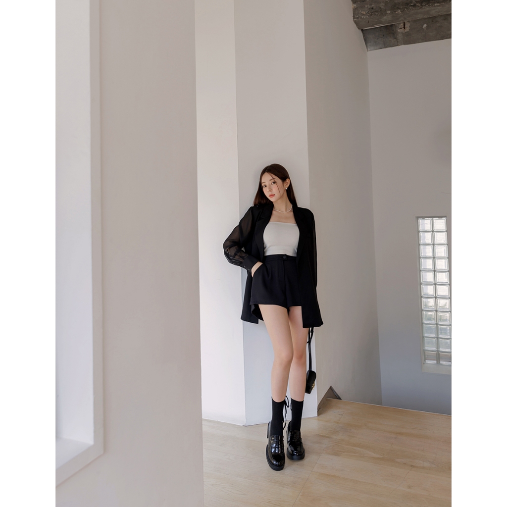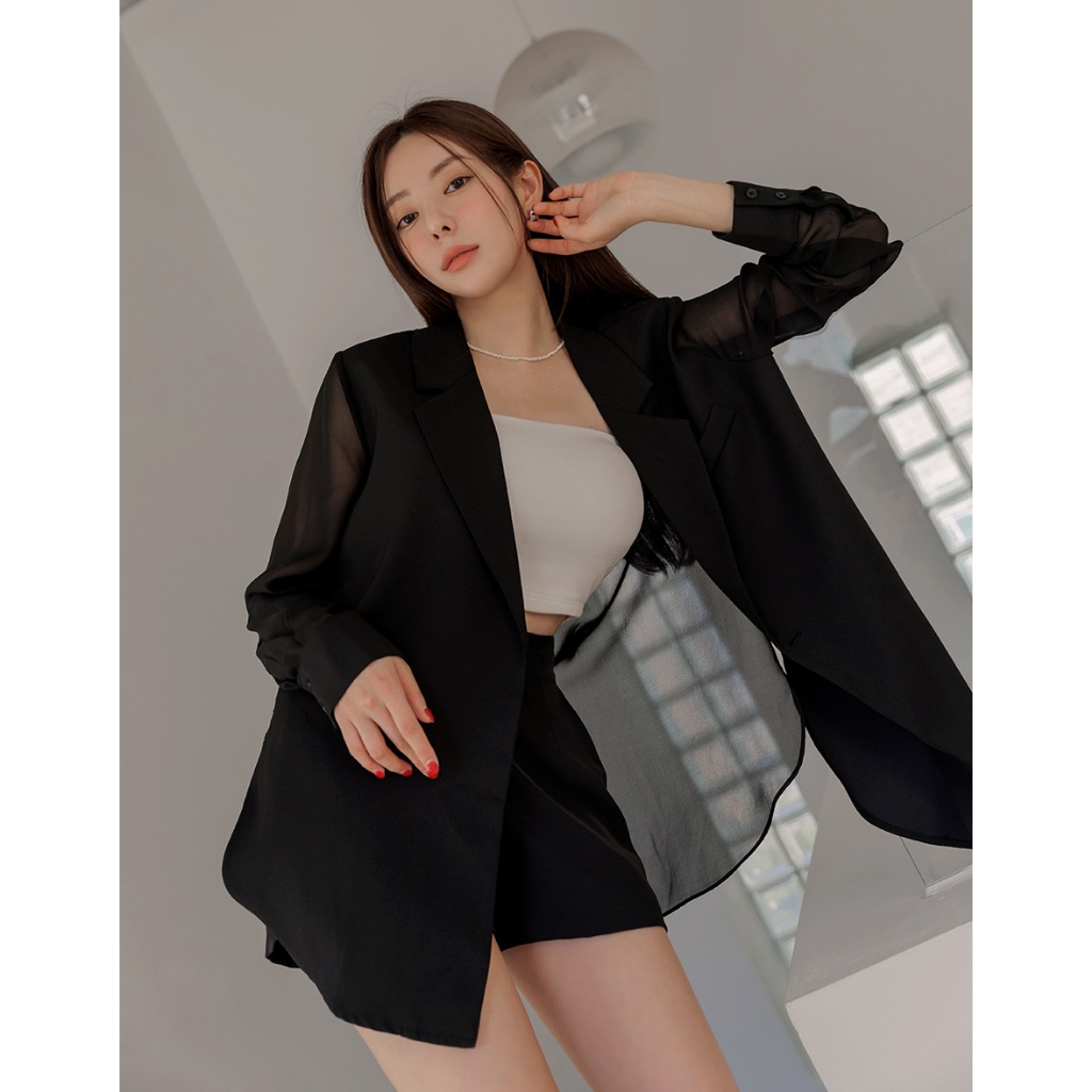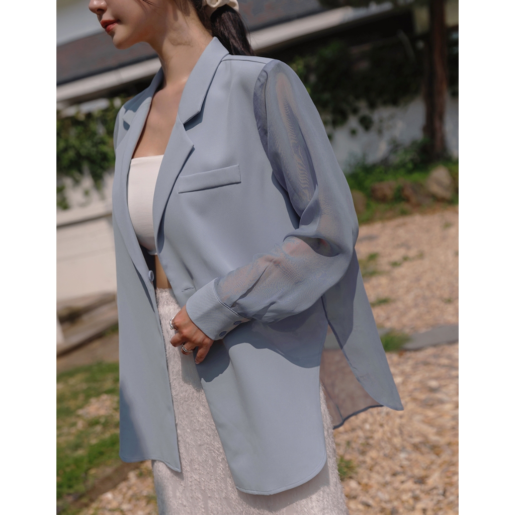 CHIC A SPACE 時髦透膚拼接西裝外套(黑/白) 女裝 現貨藍灰,S|藍灰,M|黑,S|黑,M|白,S|白,MBlazersAIR SPACE