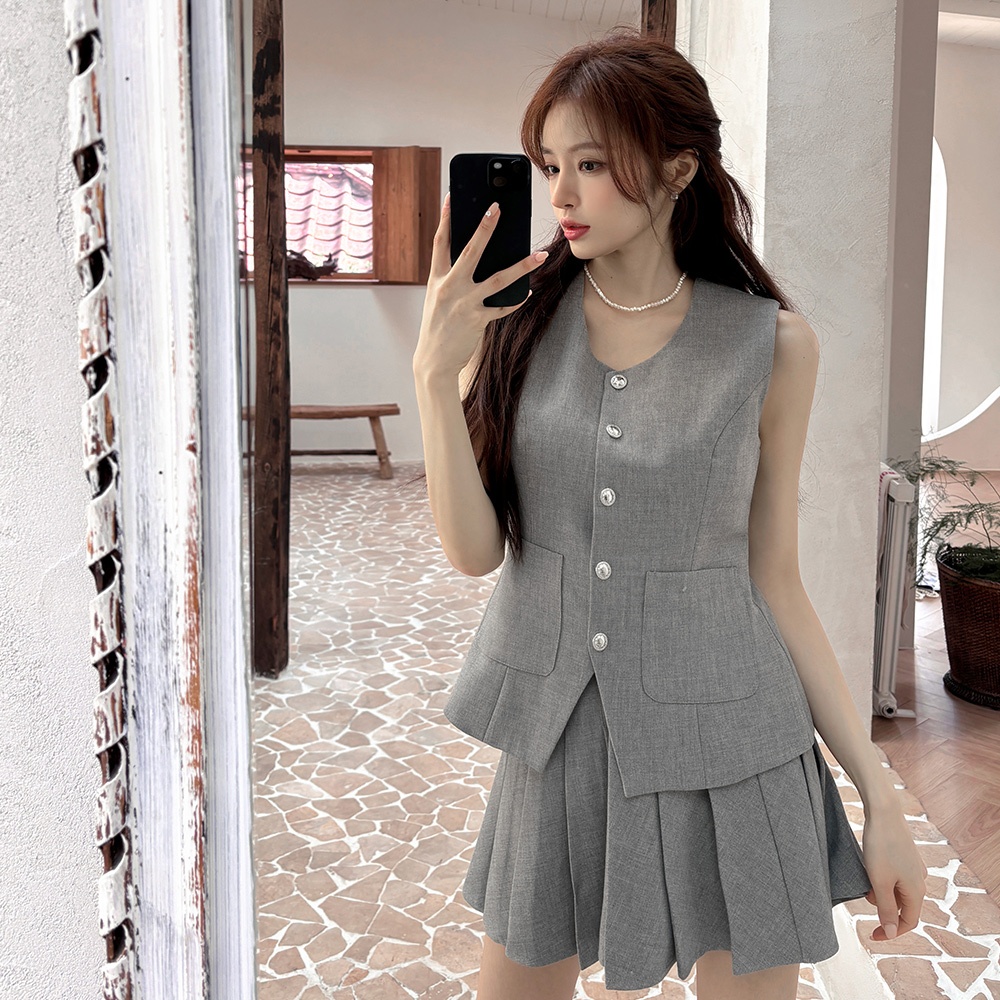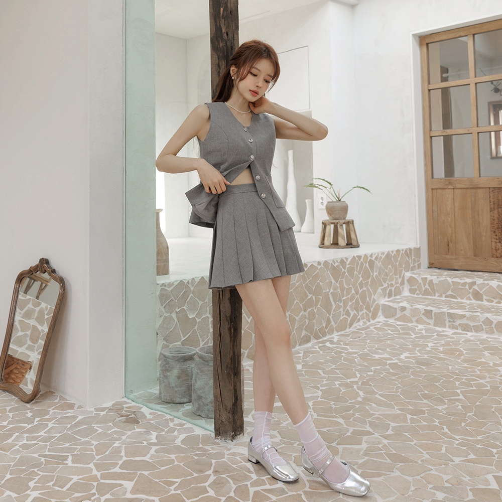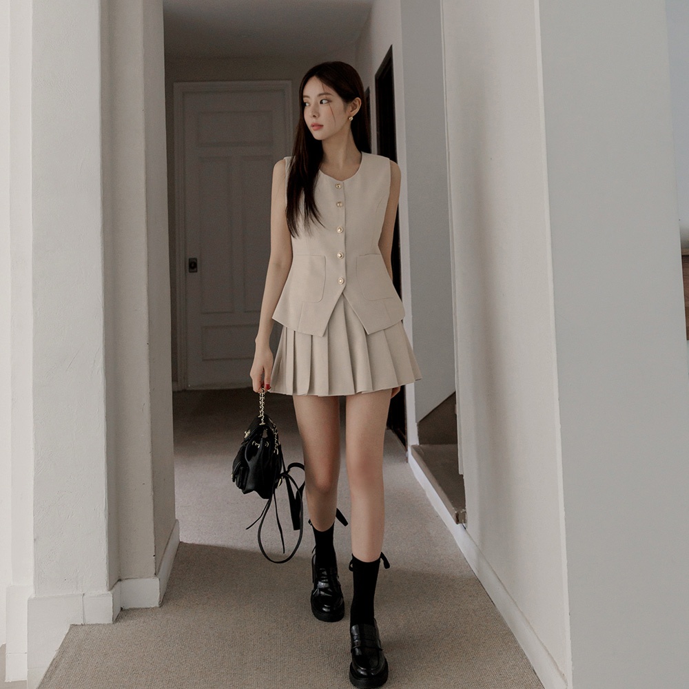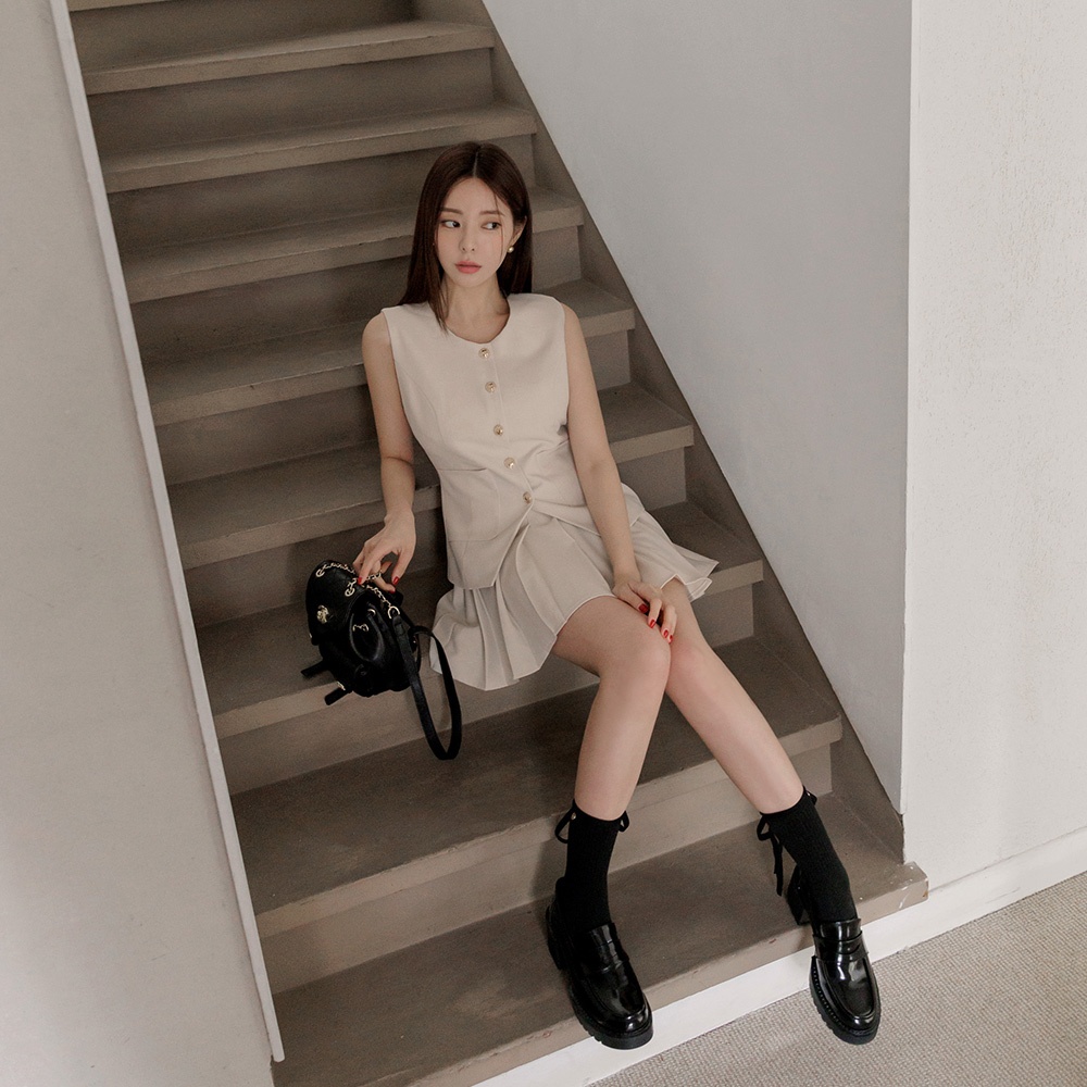 CHIC A SPACE 學院風百褶西裝短裙(杏/灰) 女裝 現貨杏,S|杏,M|杏,L|灰,S|灰,M|灰,LAIR SPACE