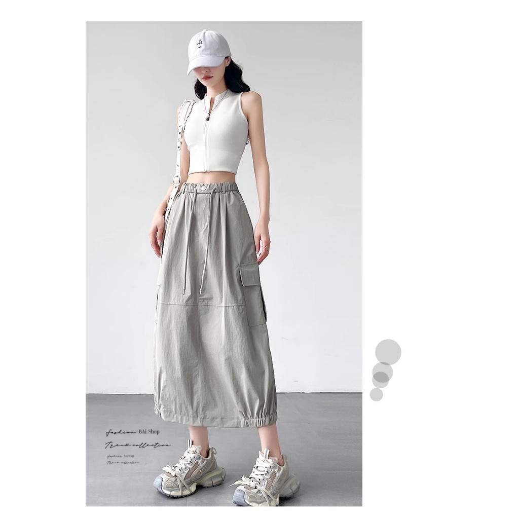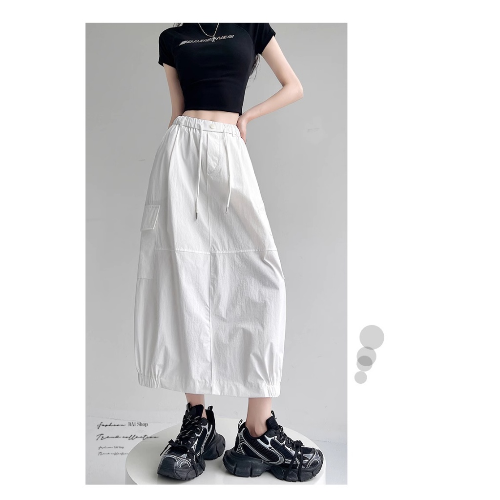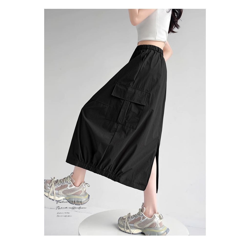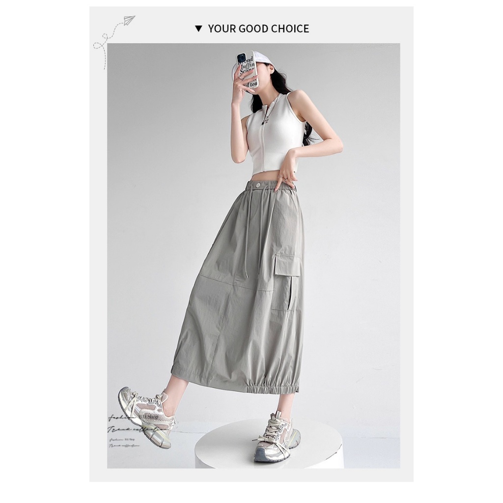 BAi白媽媽 涼感冰絲裙/工裝風 後開叉鬆緊腰-台灣現貨 隔日到貨【350418】白(01)|黑(02)|綠灰(10)BAi白媽媽 品牌旗艦店