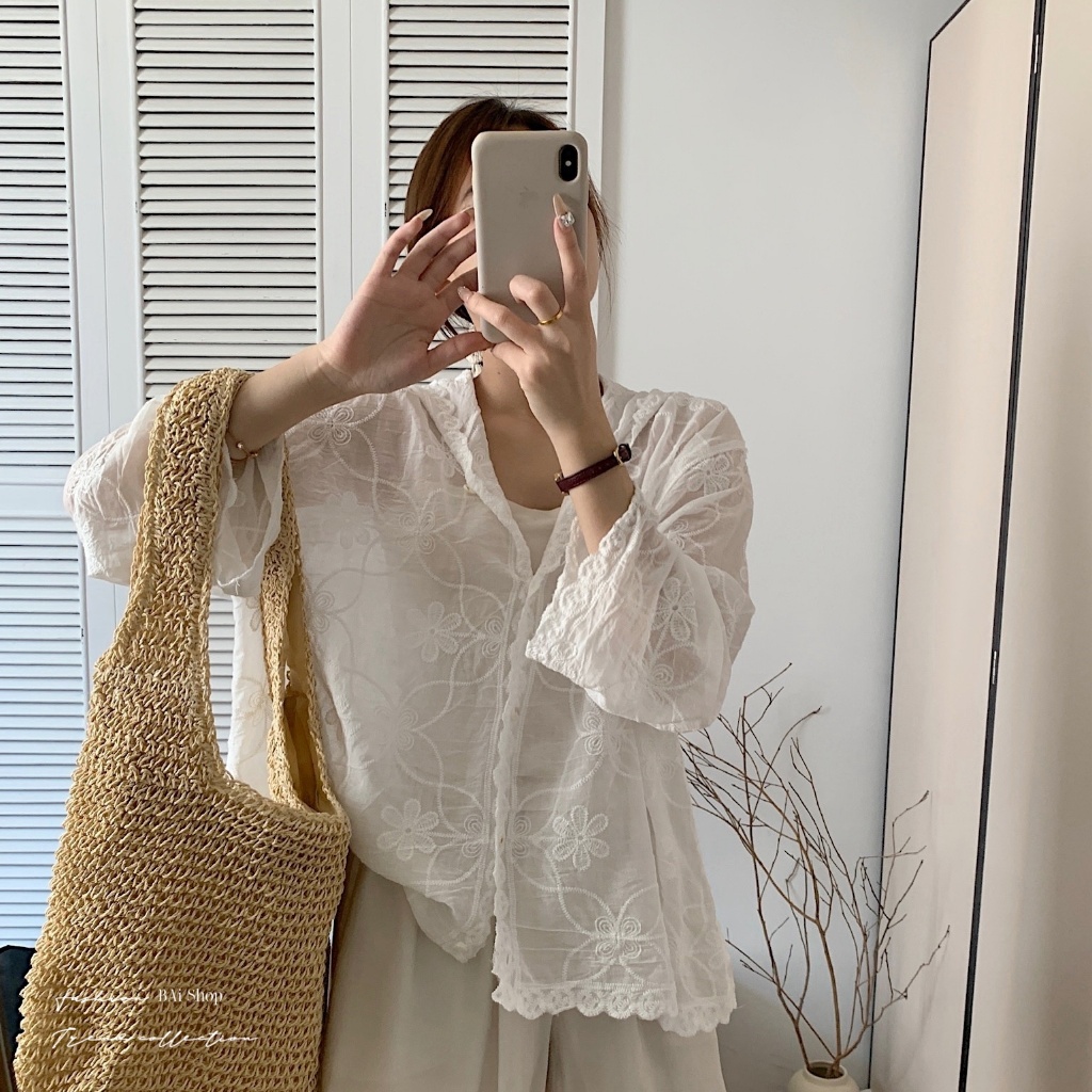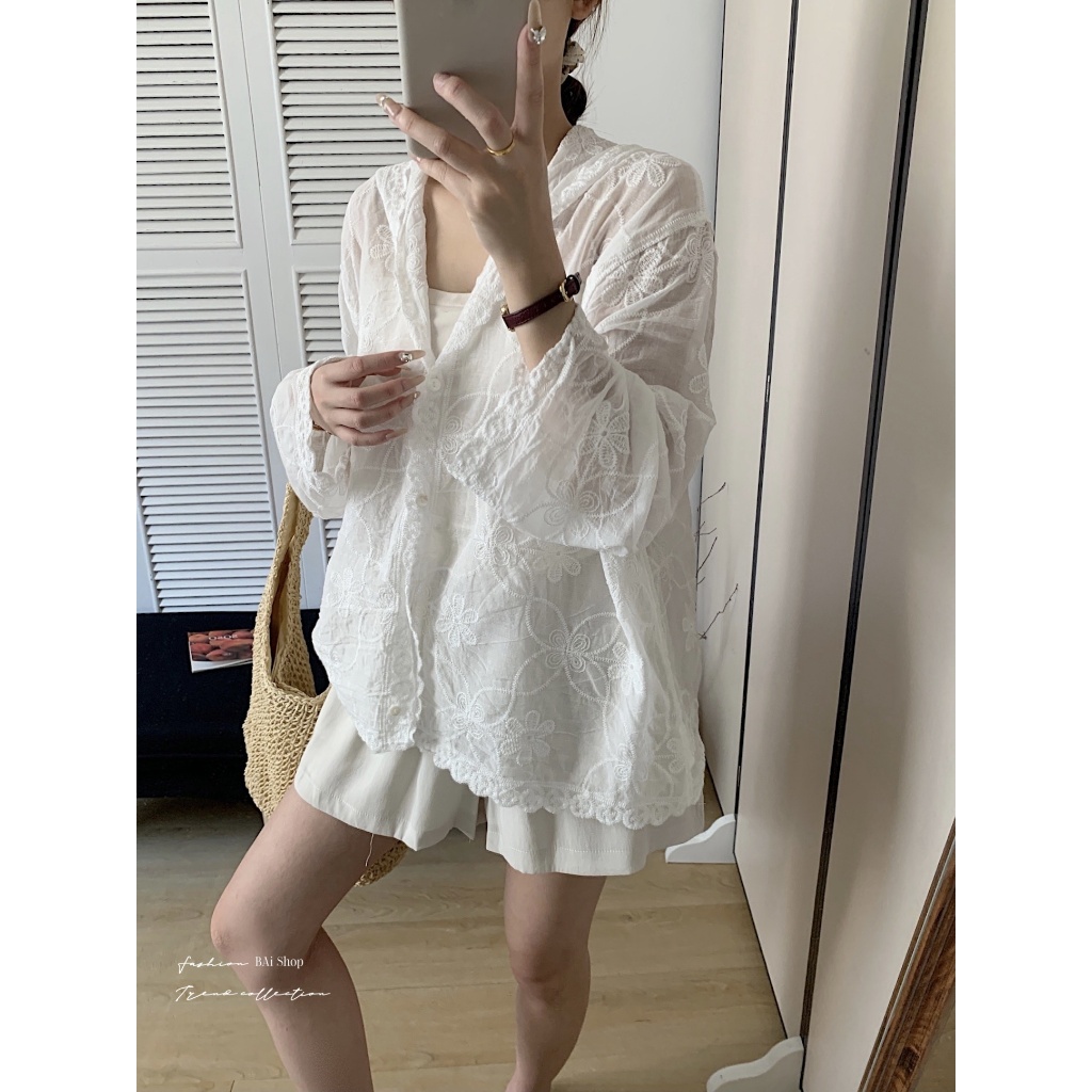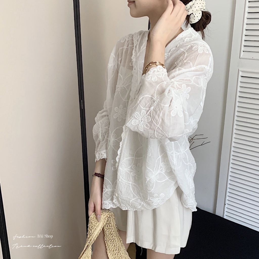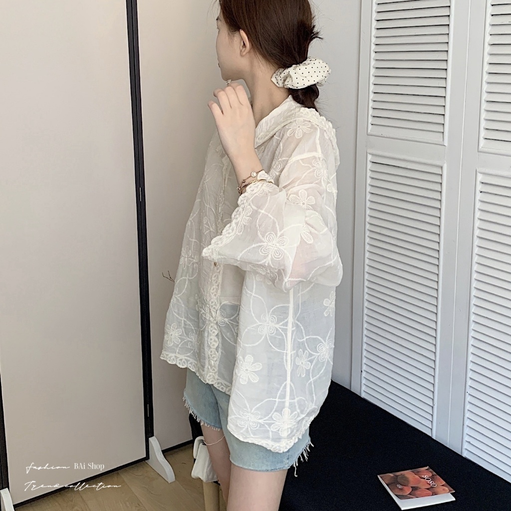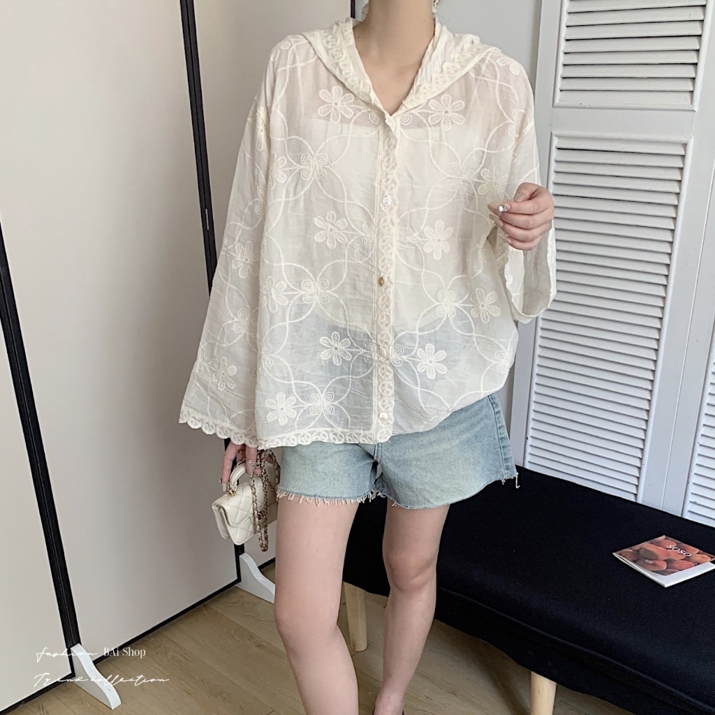 BAi白媽媽 刺繡花朵連帽衫/鈎花寬鬆防曬 Outerwear-【350516】白_透(01)|杏_透(22)JacketsBAi白媽媽 品牌旗艦店