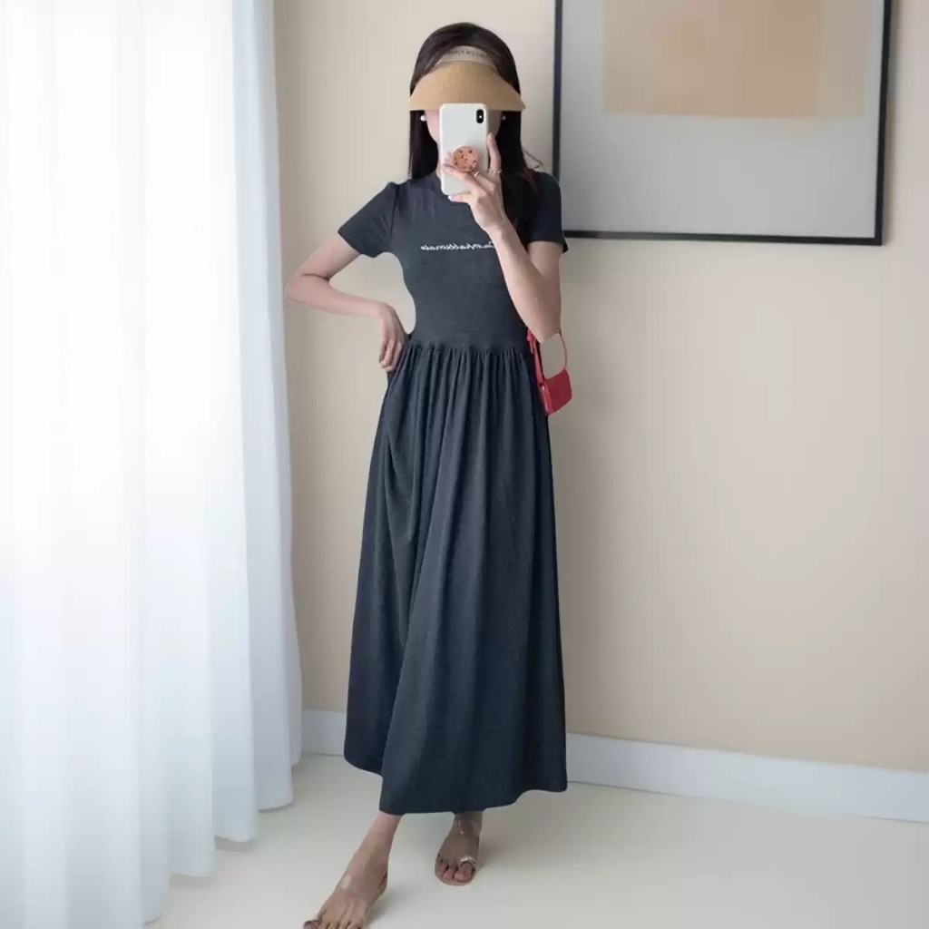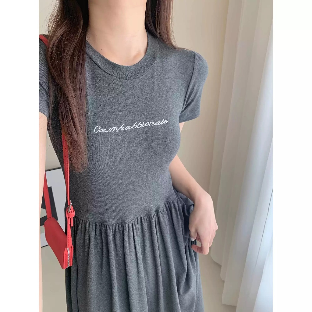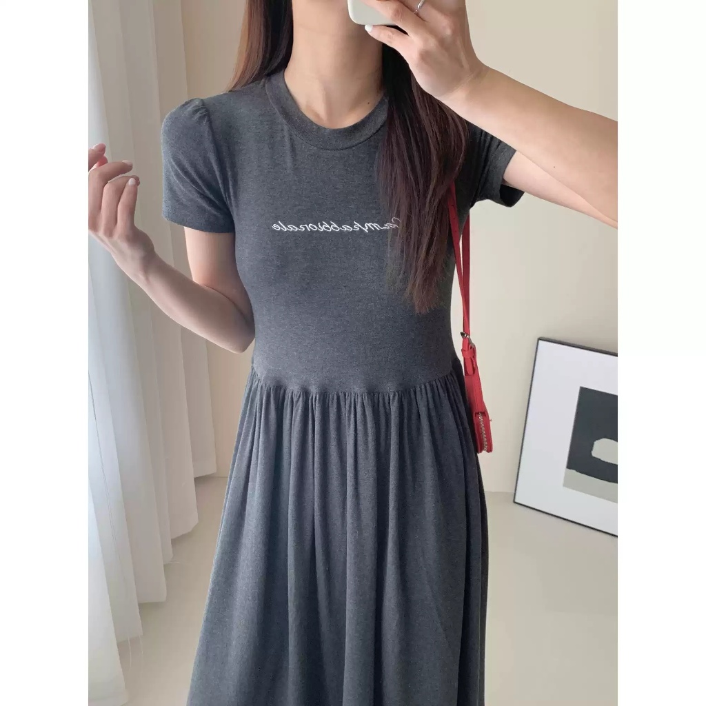 BAi白媽媽 繡字母短袖洋裝/親膚彈性棉休閒連身裙-台灣現貨 隔日到貨【350503】灰(10)BAi白媽媽 品牌旗艦店