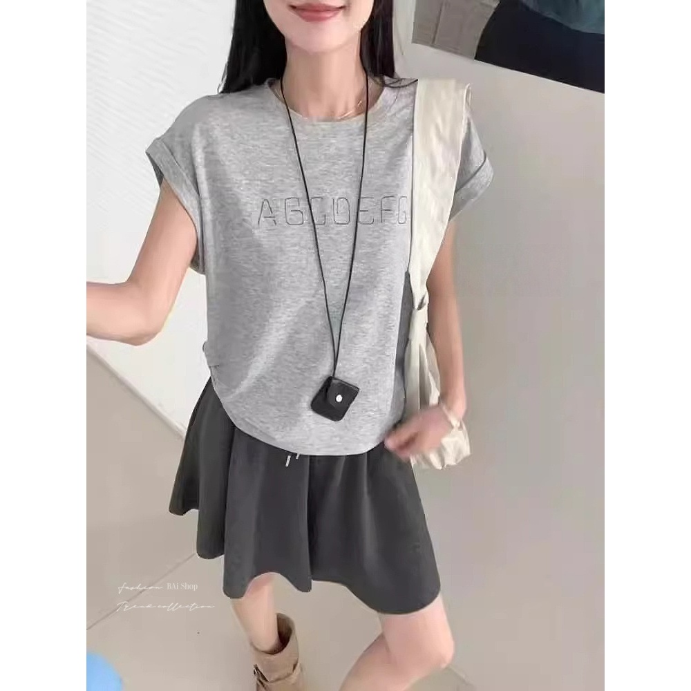 BAi白媽媽 邊鈕扣上衣/-台灣現貨 隔日到貨摺袖字母T恤【350468】白_透(01)|黑(02)|灰(10)T-shirtsBAi白媽媽 品牌旗艦店