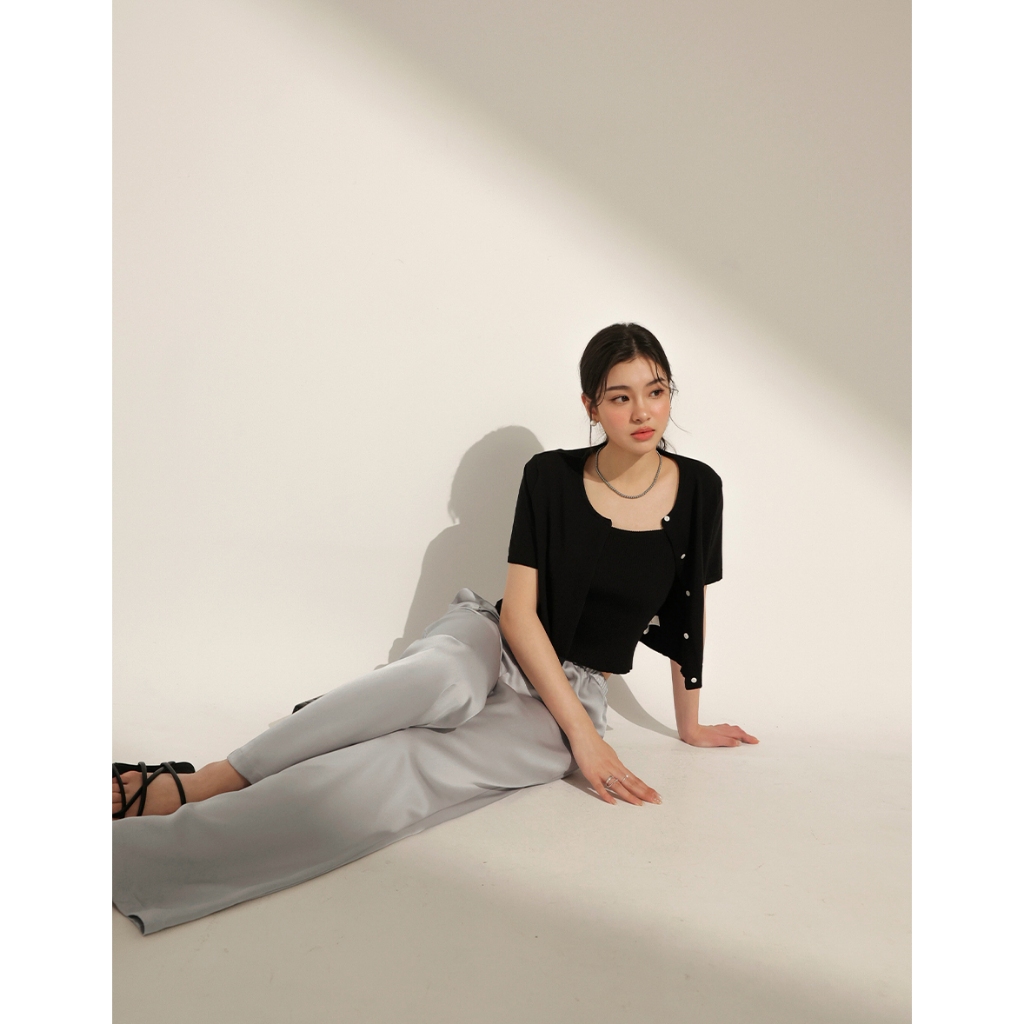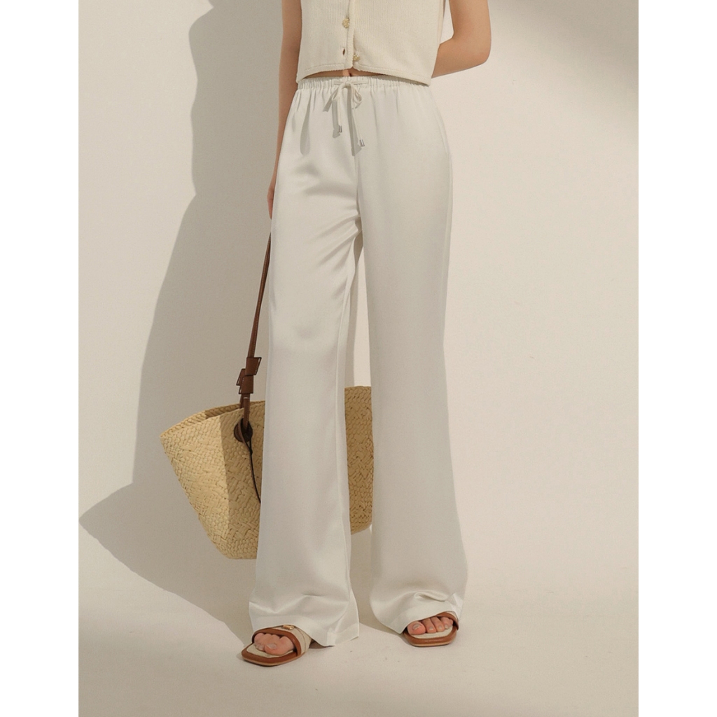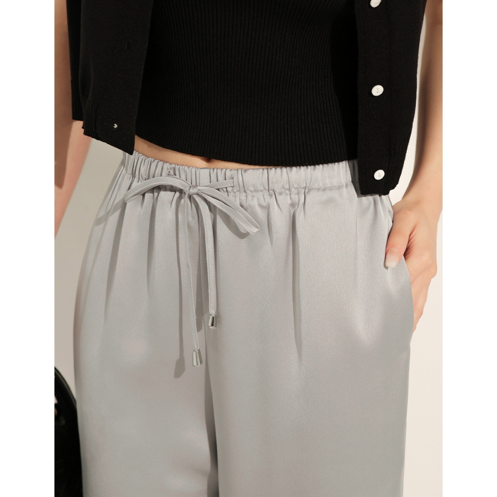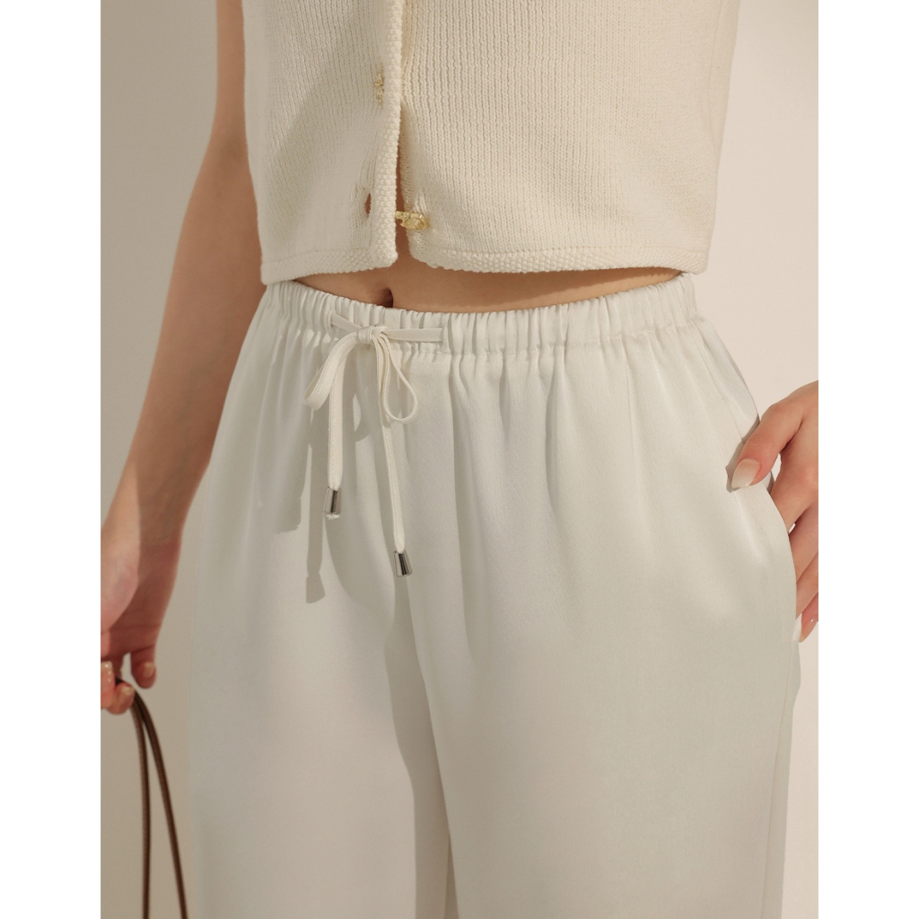 CHIC A SPACE 柔滑垂墜感抽繩寬褲(杏/灰) 女裝 現貨杏,S|杏,M|杏,L|灰,S|灰,M|灰,LPantsAIR SPACE