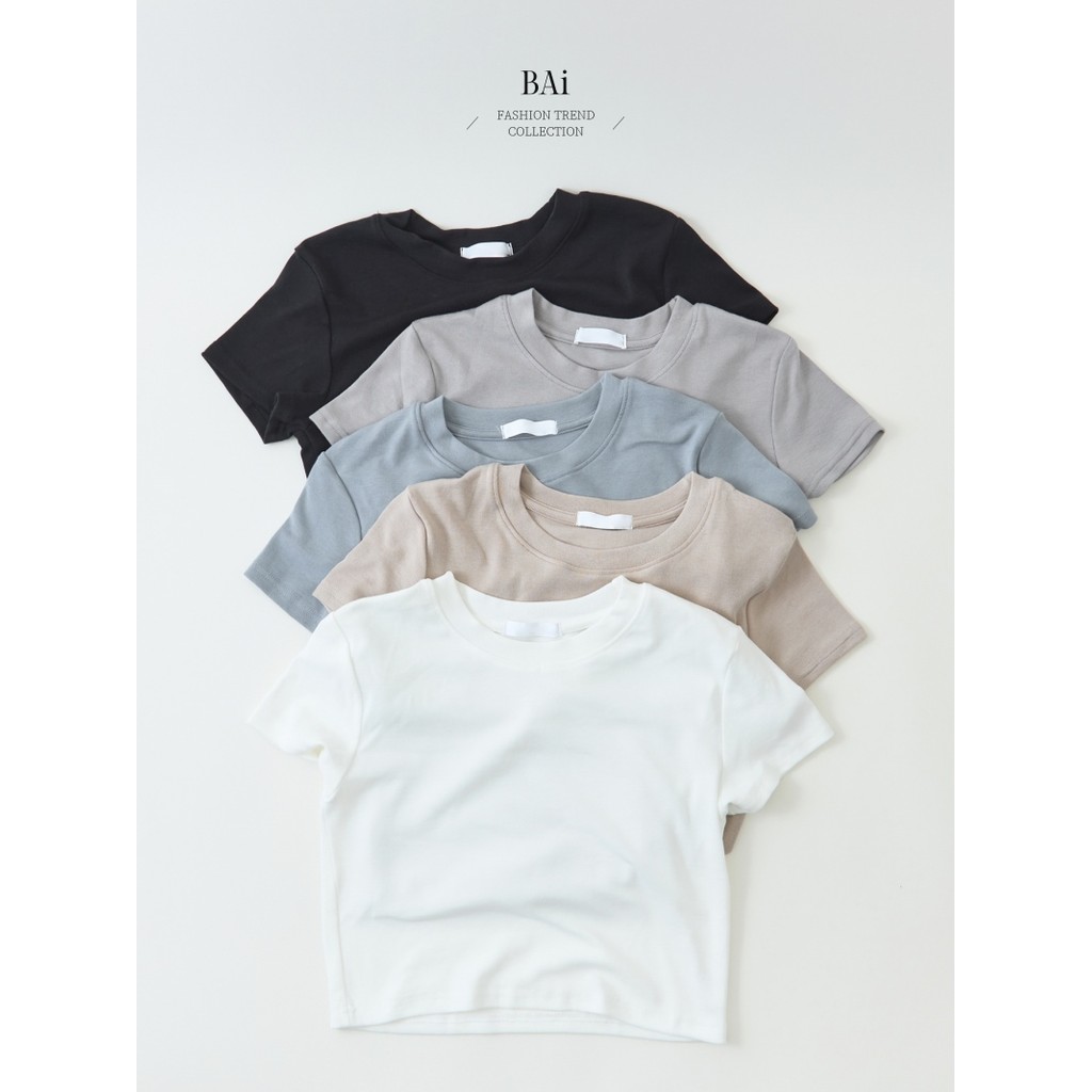 BAi白媽媽 正肩短版棉T/圓領素面短袖T恤-台灣現貨 隔日到貨【350326】米白_透(01)|黑(02)|藍(05)|卡(11)|灰(23)T-shirtsBAi白媽媽 品牌旗艦店