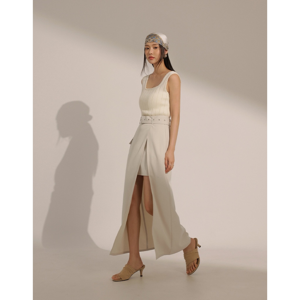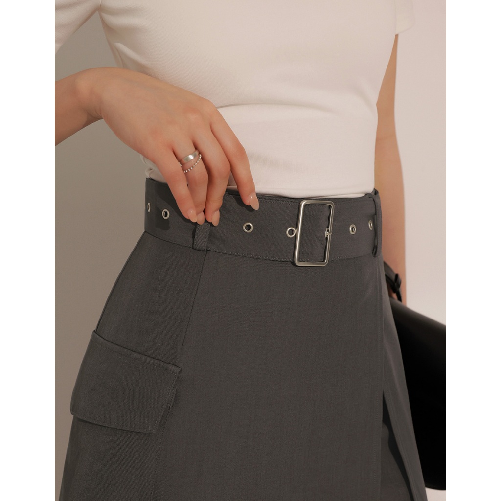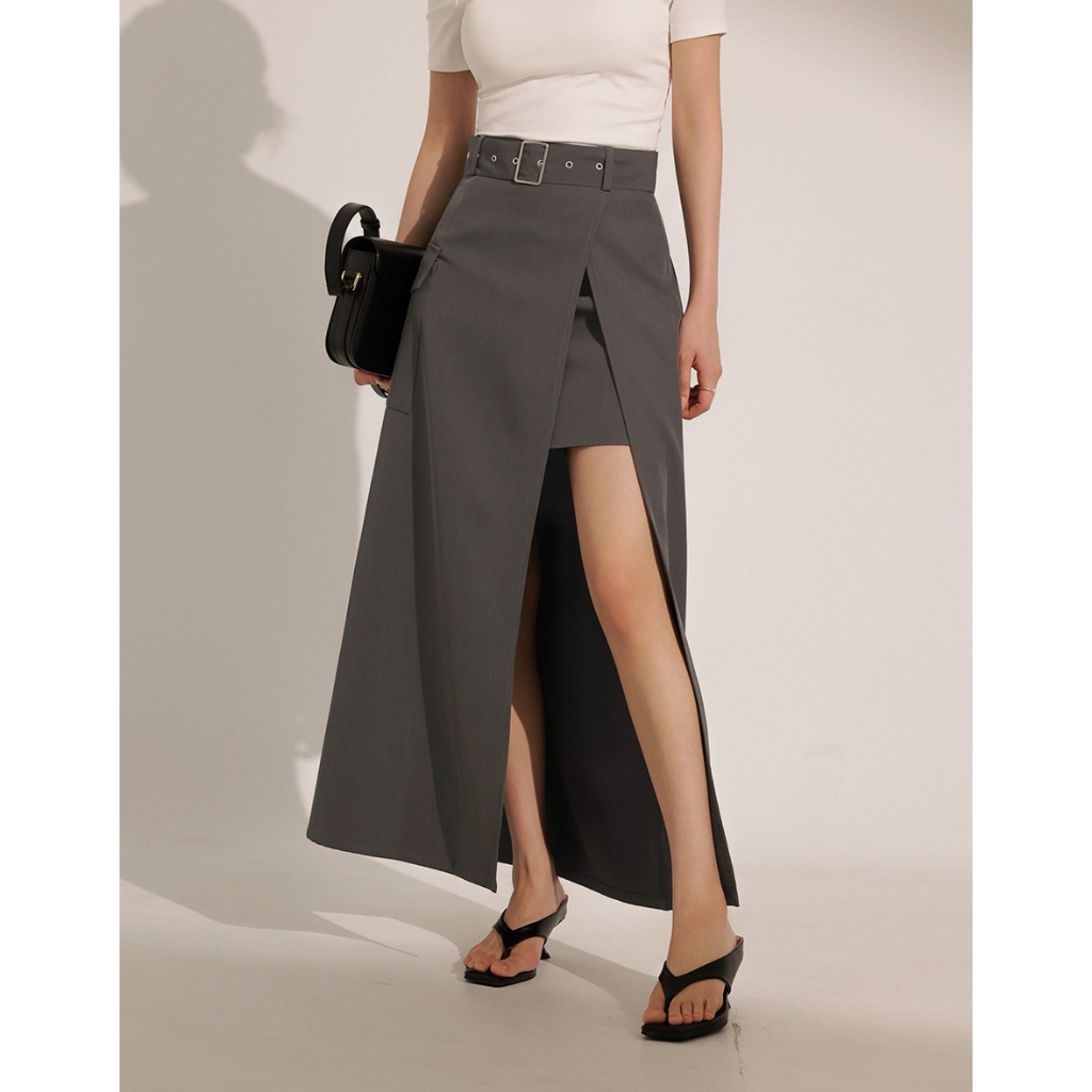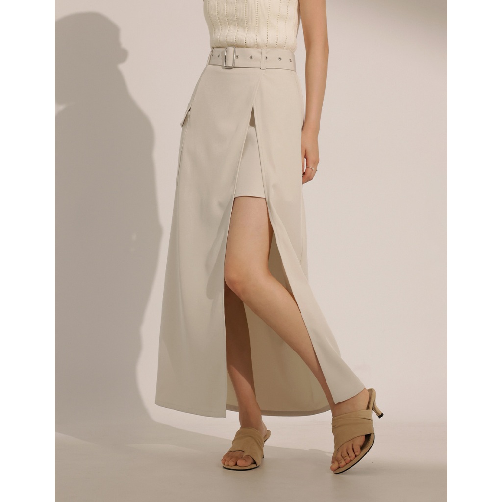 CHIC A SPACE 開衩假兩件高腰長裙( 附腰帶)(杏/深灰) 女裝 現貨杏,M|杏,L|深灰,S|深灰,M|深灰,L|杏,SAIR SPACE