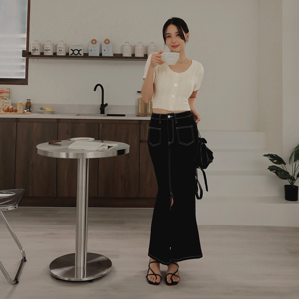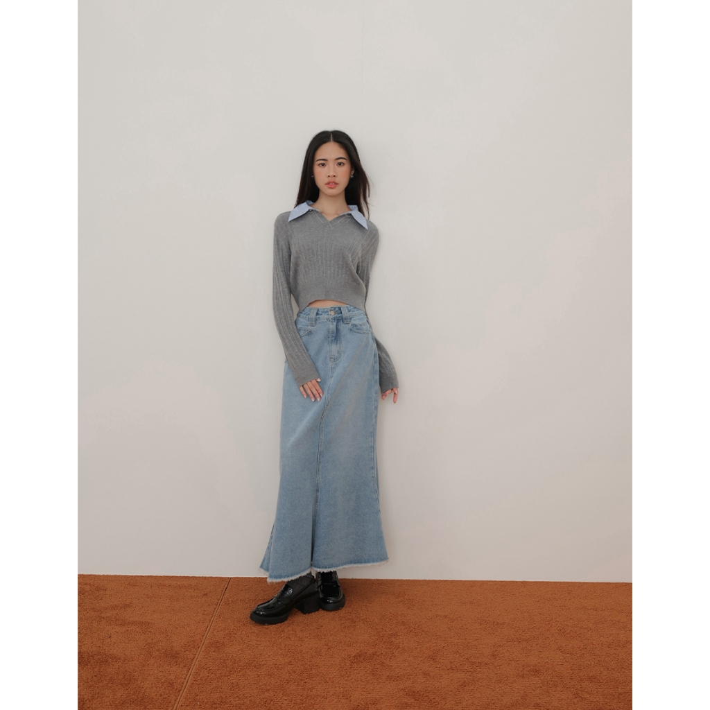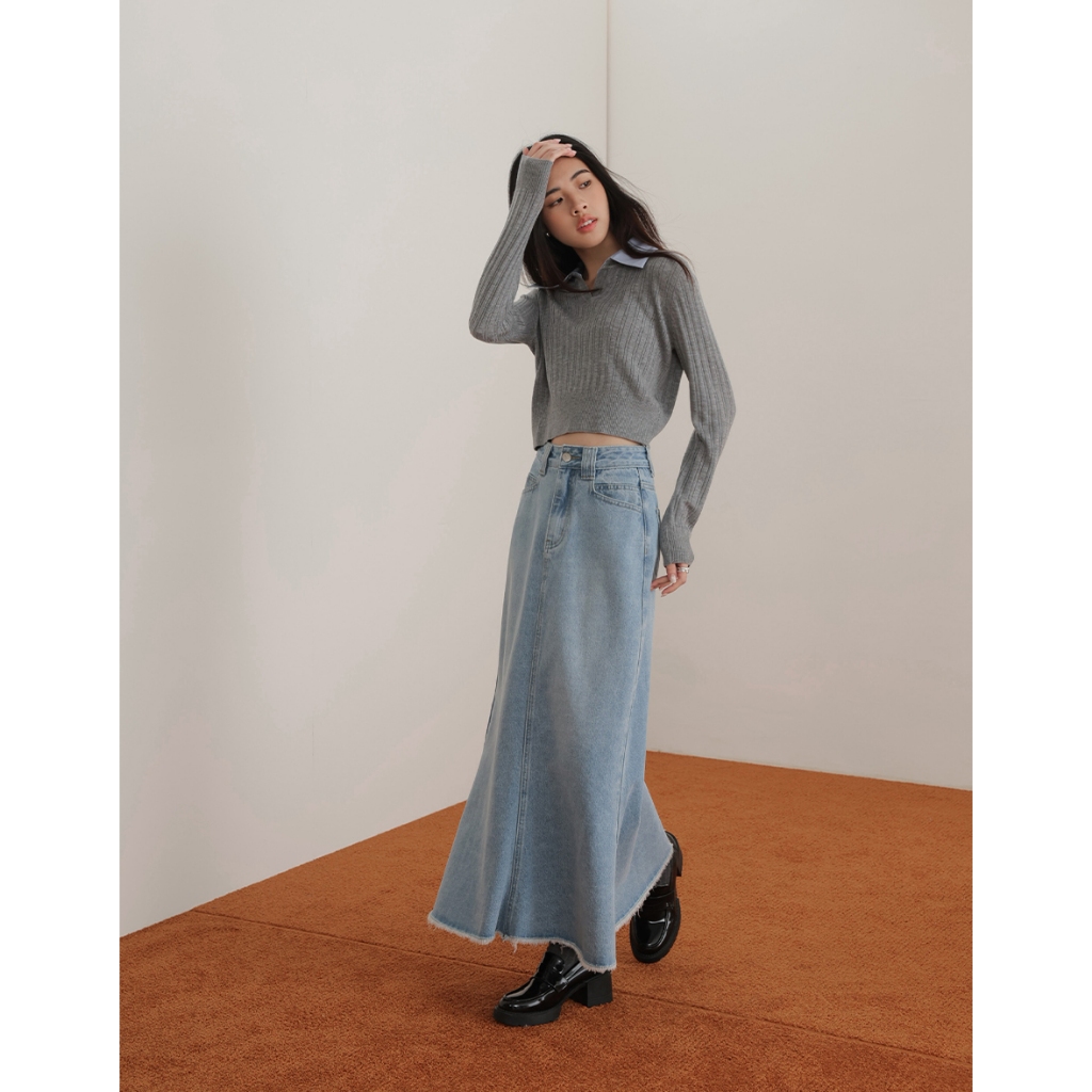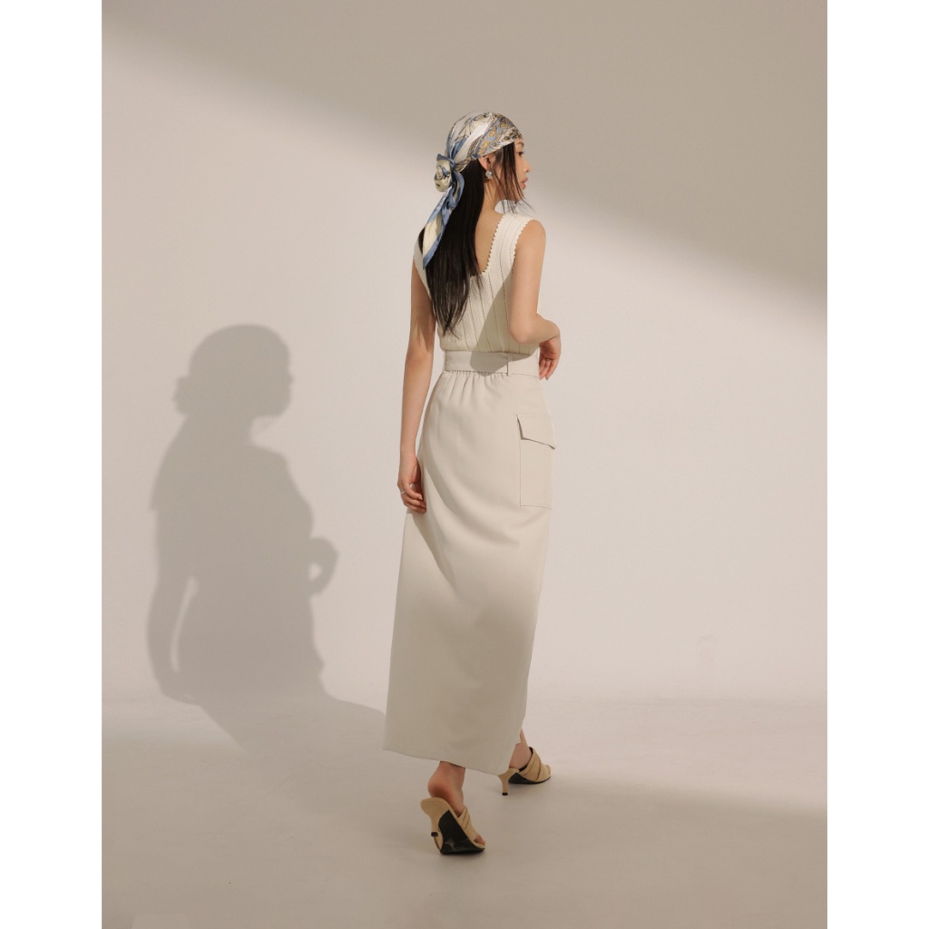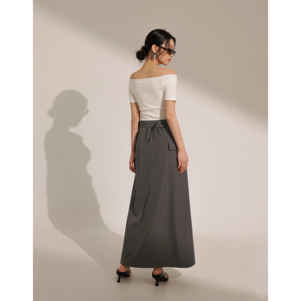 CHIC A SPACE 開衩假兩件高腰長裙( 附腰帶)(杏/深灰) 女裝 現貨杏,M|杏,L|深灰,S|深灰,M|深灰,L|杏,SAIR SPACE