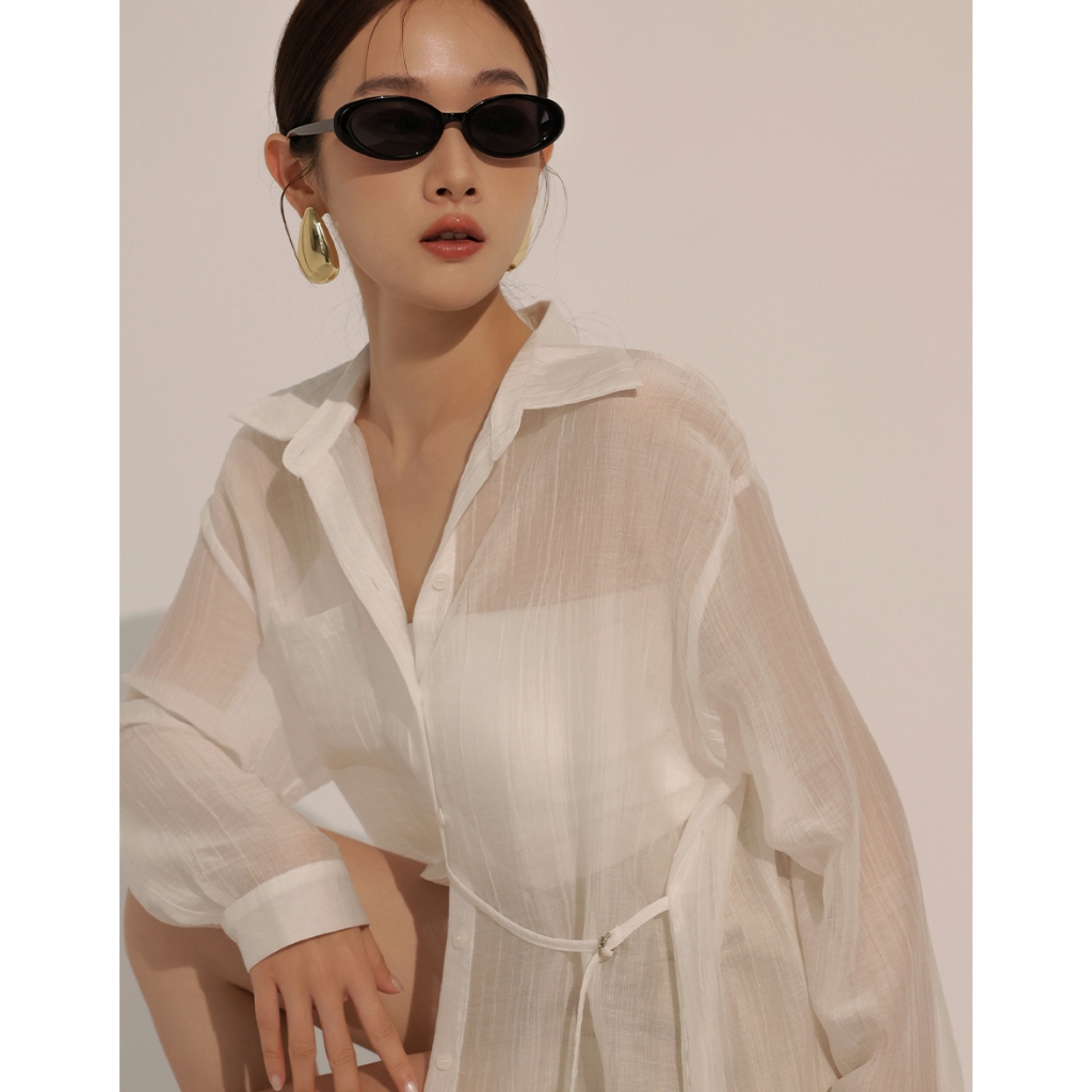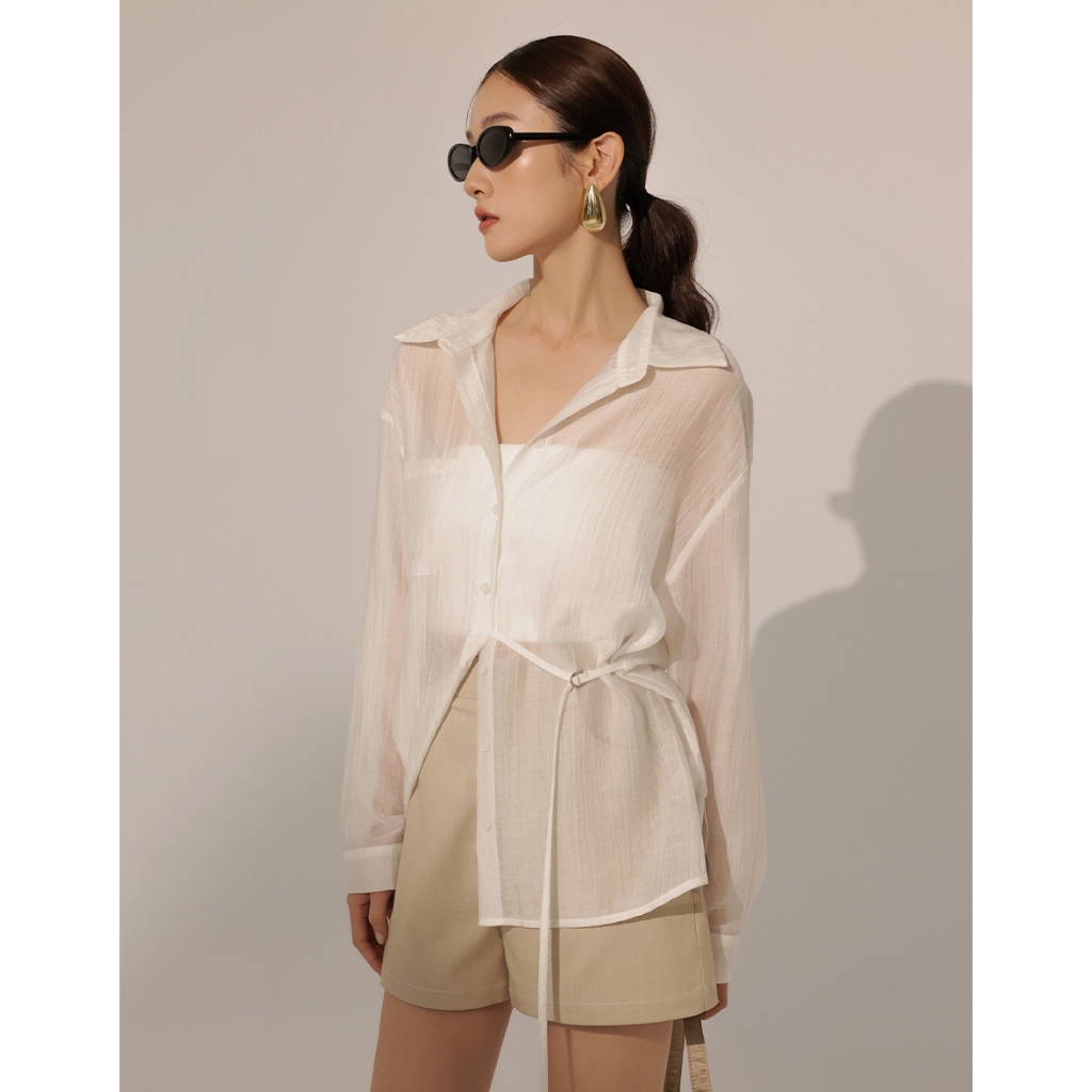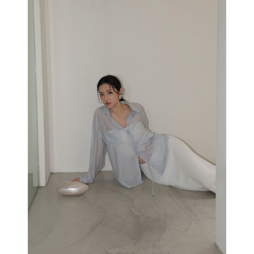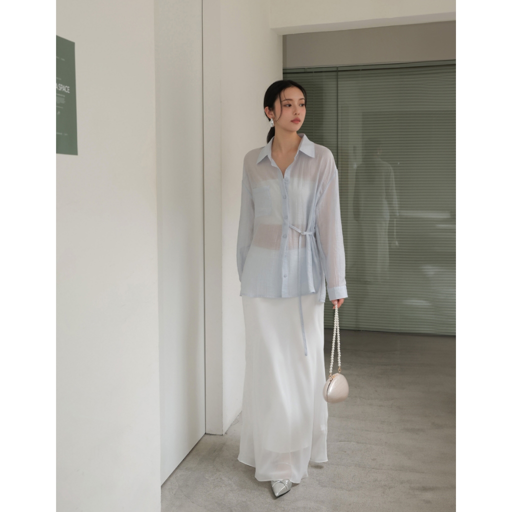 CHIC A SPACE 直條壓紋透肌側扣帶長版襯衫(白/藍) 女裝 現貨白,S|白,M|白,L|藍,S|藍,M|藍,LShirts & BlousesAIR SPACE