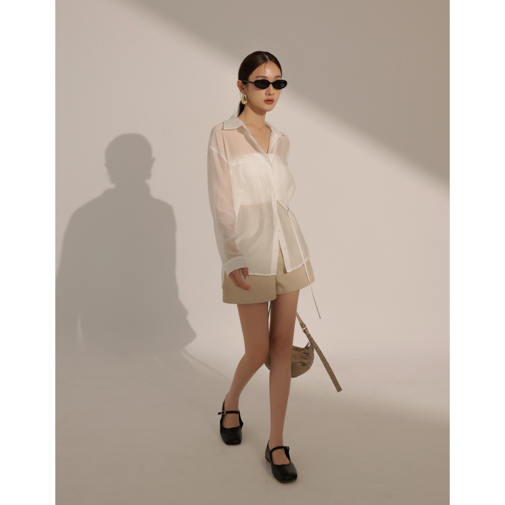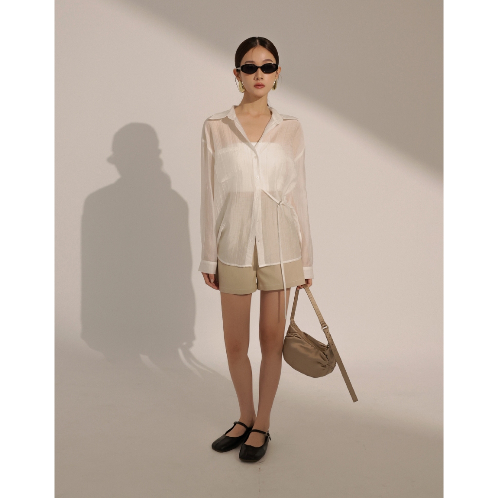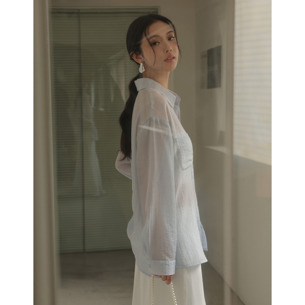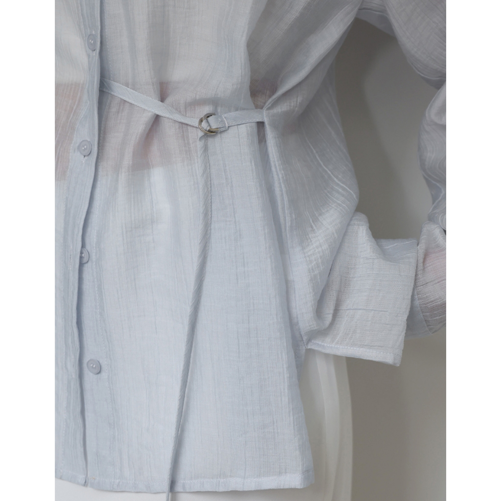 CHIC A SPACE 直條壓紋透肌側扣帶長版襯衫(白/藍) 女裝 現貨白,S|白,M|白,L|藍,S|藍,M|藍,LShirts & BlousesAIR SPACE