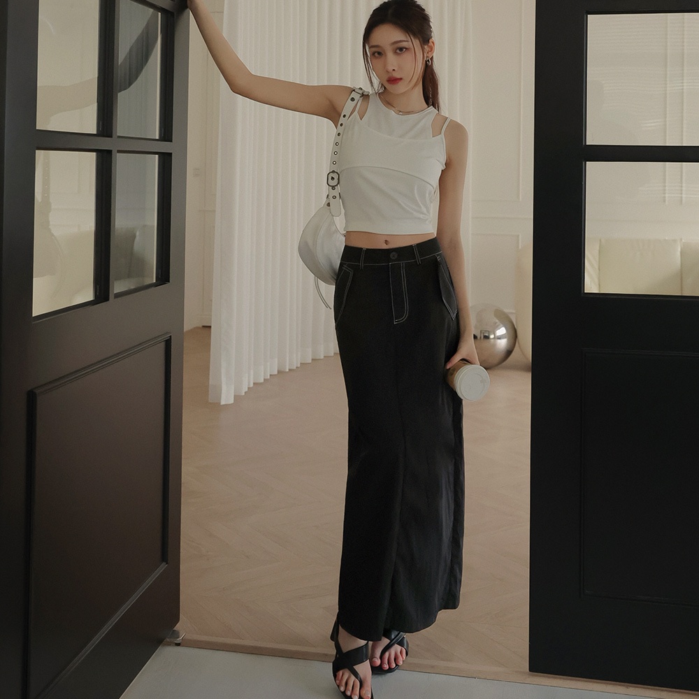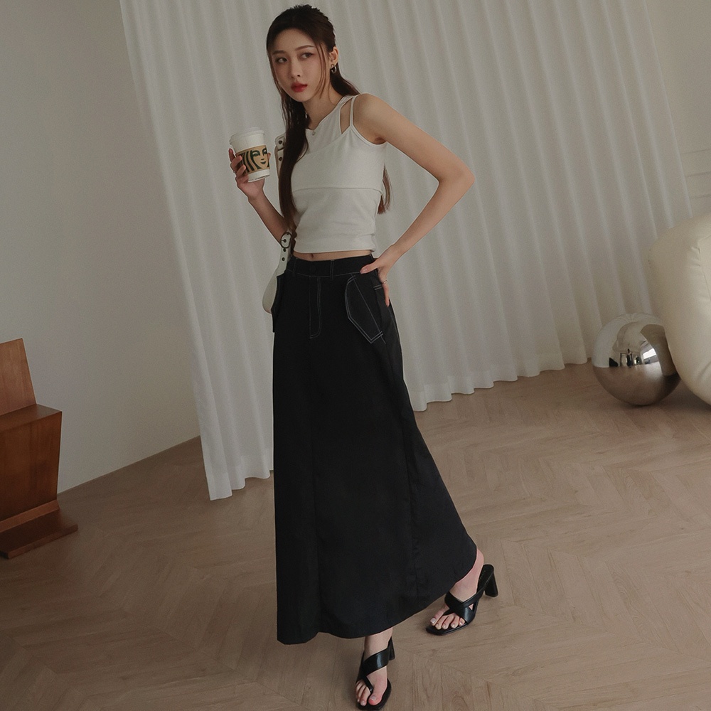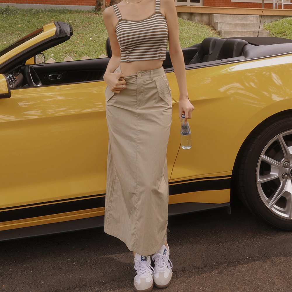AIR SPACE LADY 休閒尼龍開衩長裙(黑/杏) 女裝 現貨黑,S|黑,M|黑,L|杏,S|杏,M|杏,LAIR SPACE