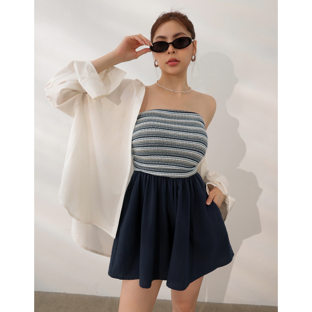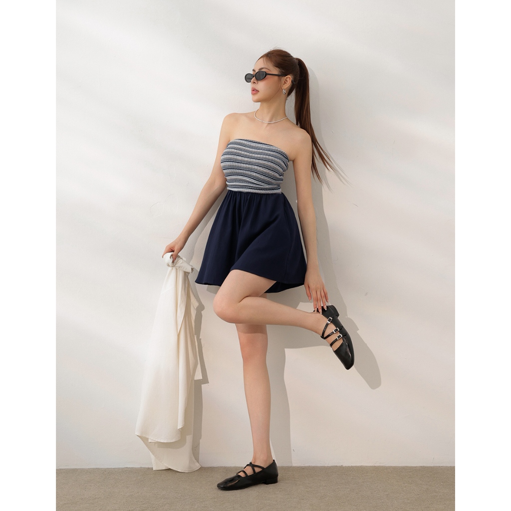 AIR SPACE LADY 多彩混織條紋平口連身短褲(附胸墊)(深藍/咖啡) 女裝 現貨深藍,S|深藍,M|深藍,L|咖啡,S|咖啡,M|咖啡,LPlaysuitsAIR SPACE