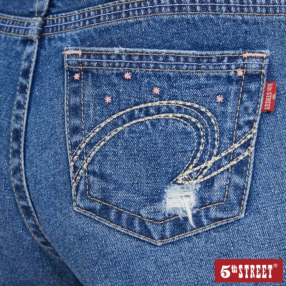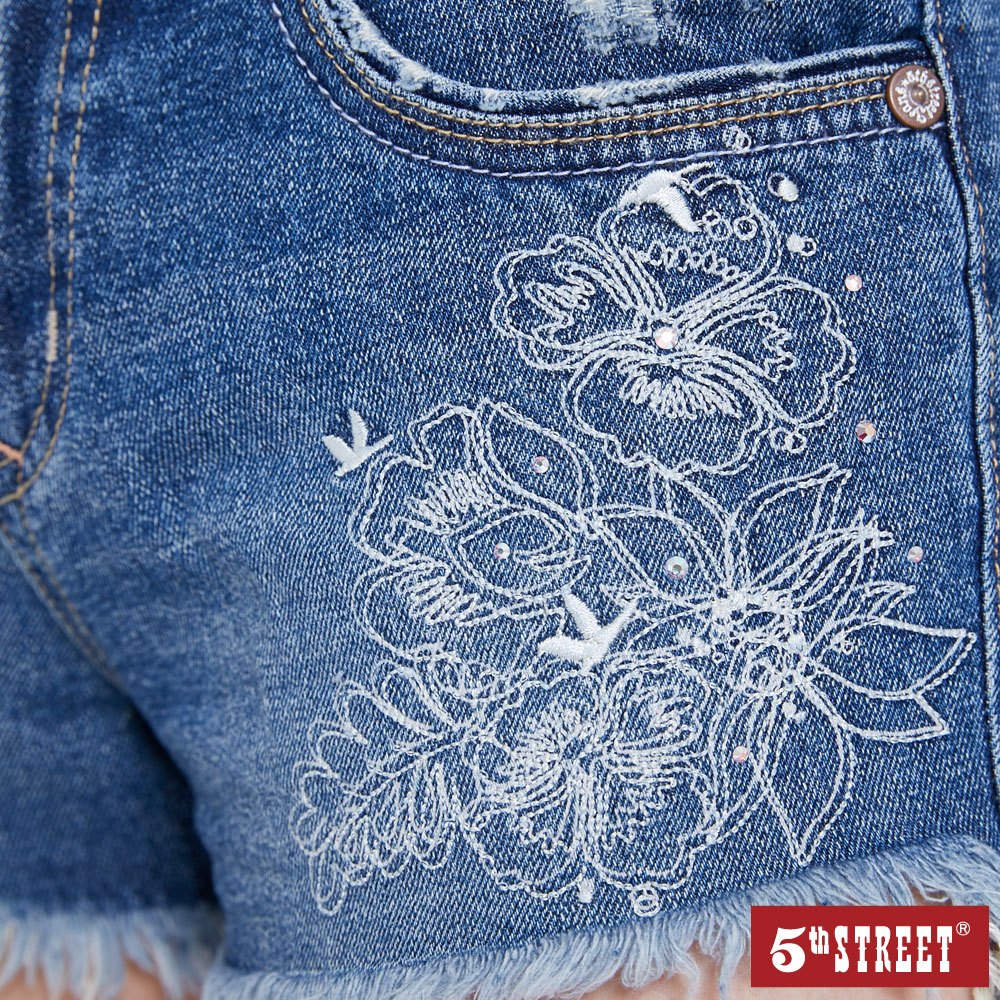 【5th STREET】 女裝 繡花牛仔短褲-拔洗藍 (920110)L|XL|XS|S|MShorts5thStreet 官方旗艦店