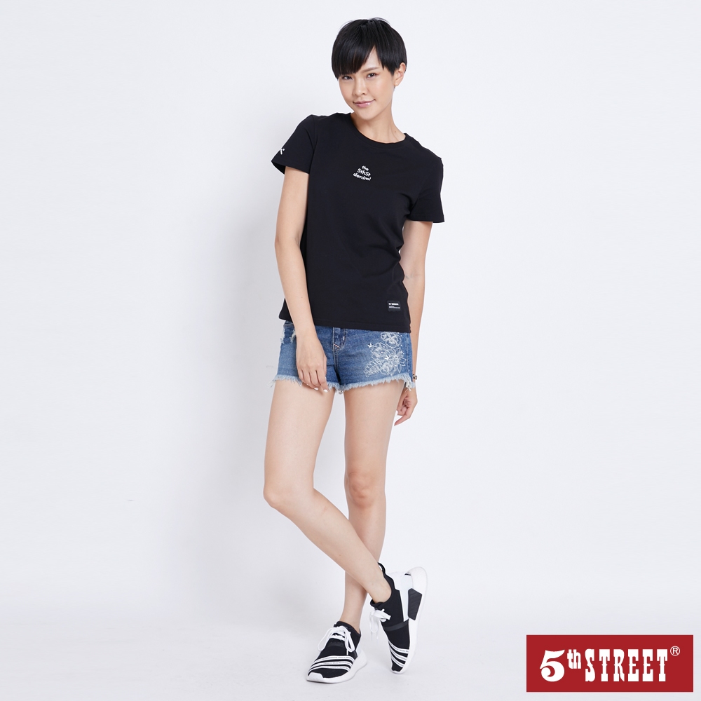 【5th STREET】 女裝 印花補釘牛仔短褲-拔洗藍 (920111)M|L|XL|XS|SShorts5thStreet 官方旗艦店