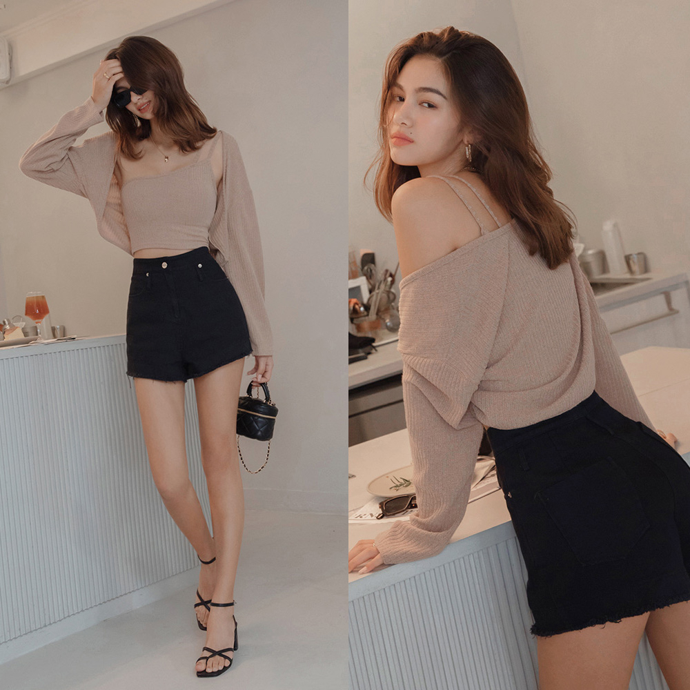 AIR SPACE 雙線單肩短版兩件式上衣(附胸墊)(淺藍/卡其/粉紅/淺綠) 女裝 現貨粉紅,S|粉紅,M|淺綠,S|淺綠,M|淺綠,L|粉紅,L|淺藍,S|淺藍,M|淺藍,L|卡其,S|卡其,M|卡其,LT-shirtsAIR SPACE
