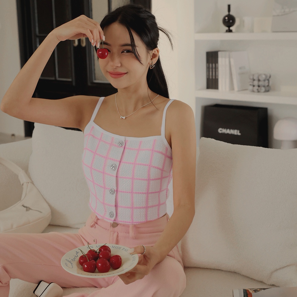 AIR SPACE LADY 毛呢大格紋細肩背心(藍/粉紅) 女裝 現貨藍,S|藍,M|藍,L|粉紅,S|粉紅,M|粉紅,LTanks & CamisolesAIR SPACE