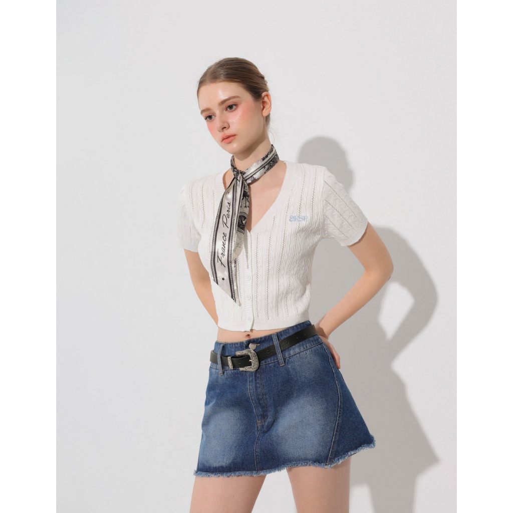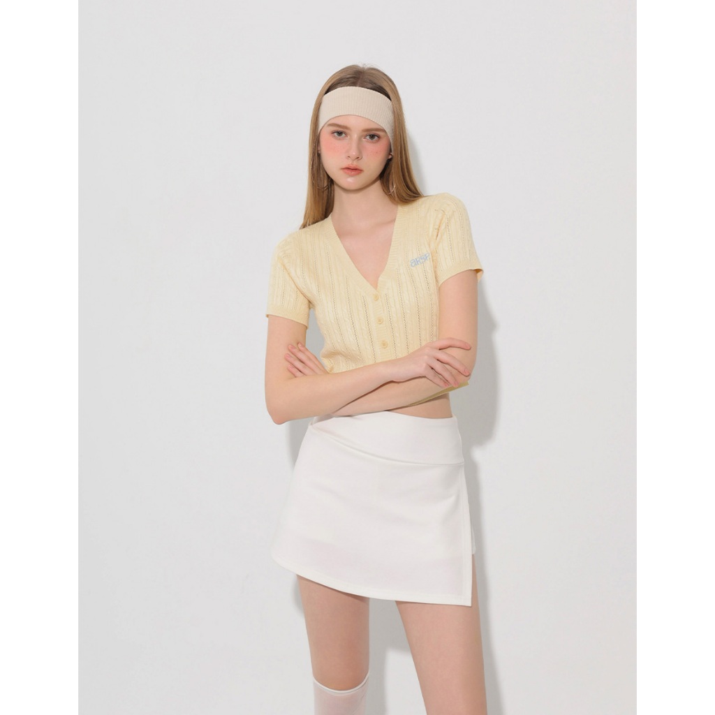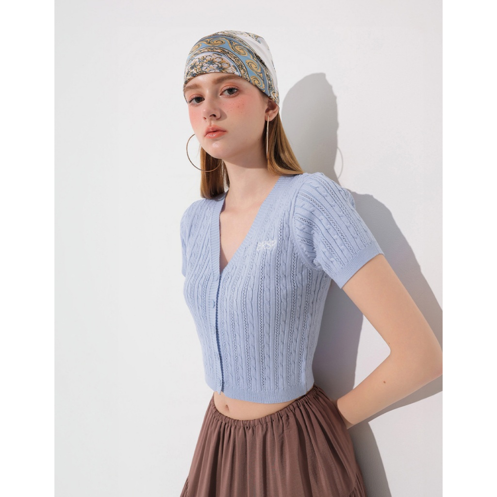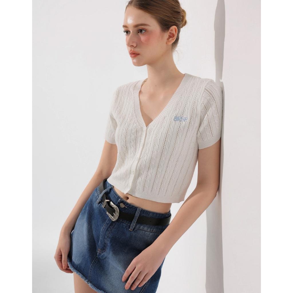 AIR SPACE 品牌LOGO刺繡麻花短袖針織開襟衫(白/黃/淺藍) 女裝 現貨白,S|白,M|黃,S|黃,M|淺藍,S|淺藍,MAIR SPACE