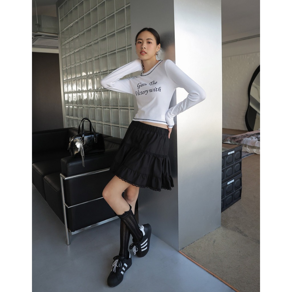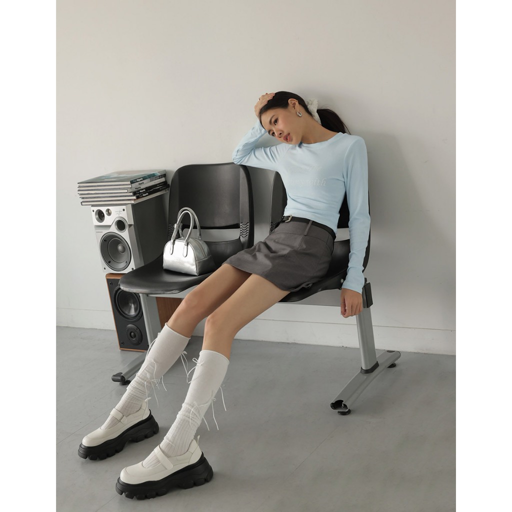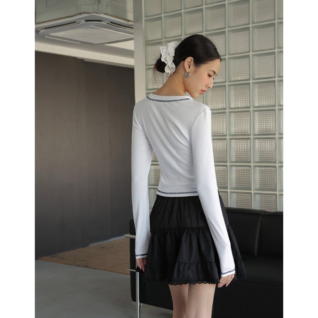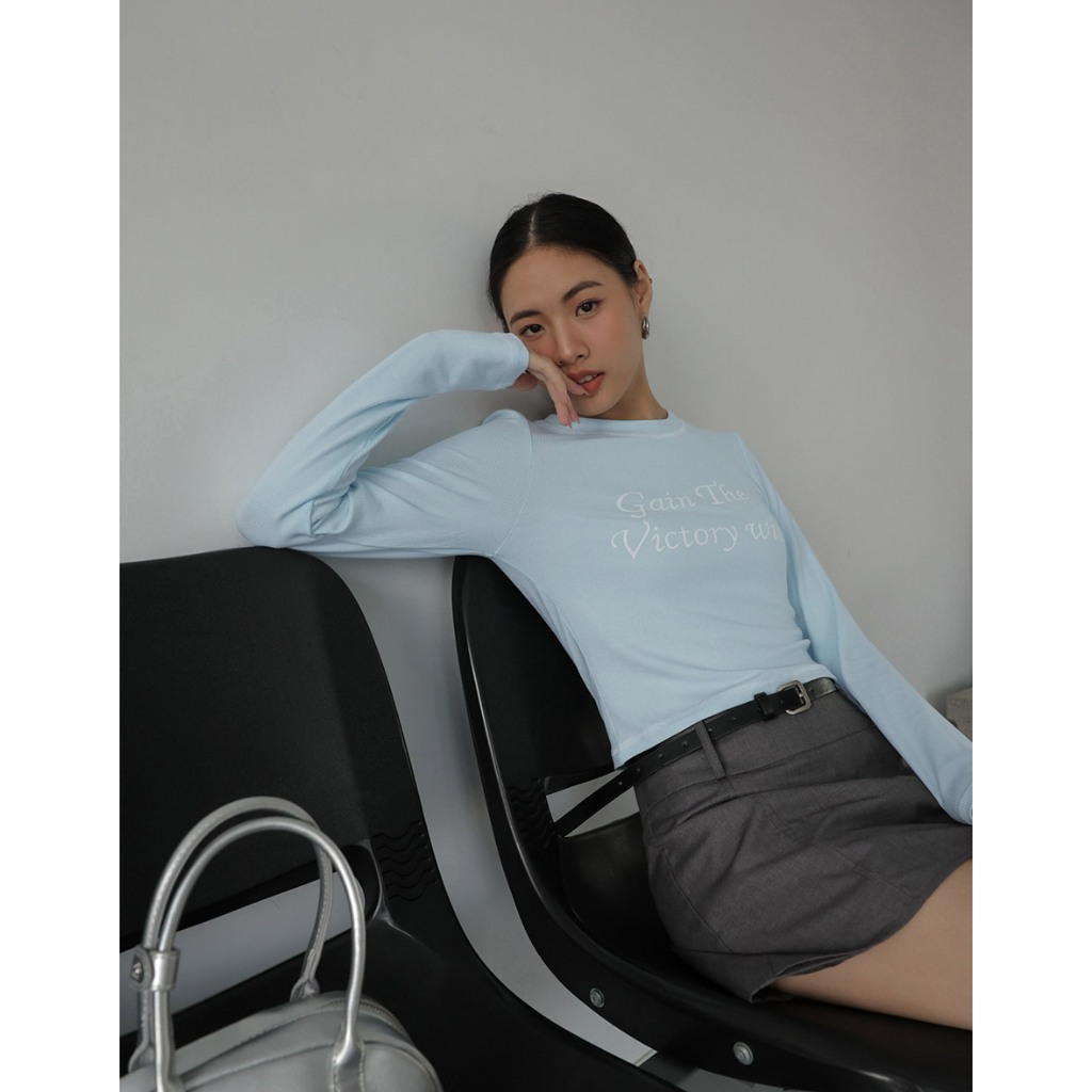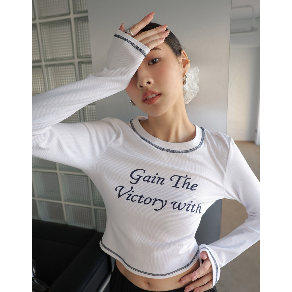 AIR SPACE LADY 反車線字母羅紋TEE(白/藍) 女裝 現貨