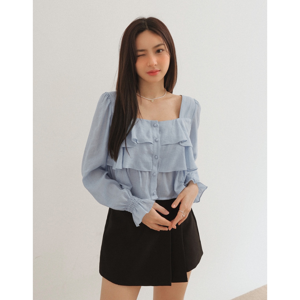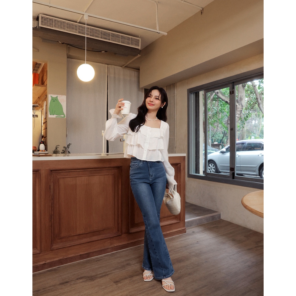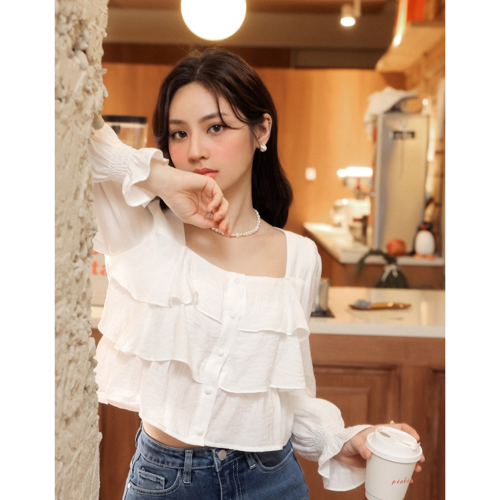 AIR SPACE LADY 層次感荷葉喇叭袖上衣(白/藍) 女裝 現貨白,S|白,M|白,L|藍,S|藍,M|藍,LOthersAIR SPACE