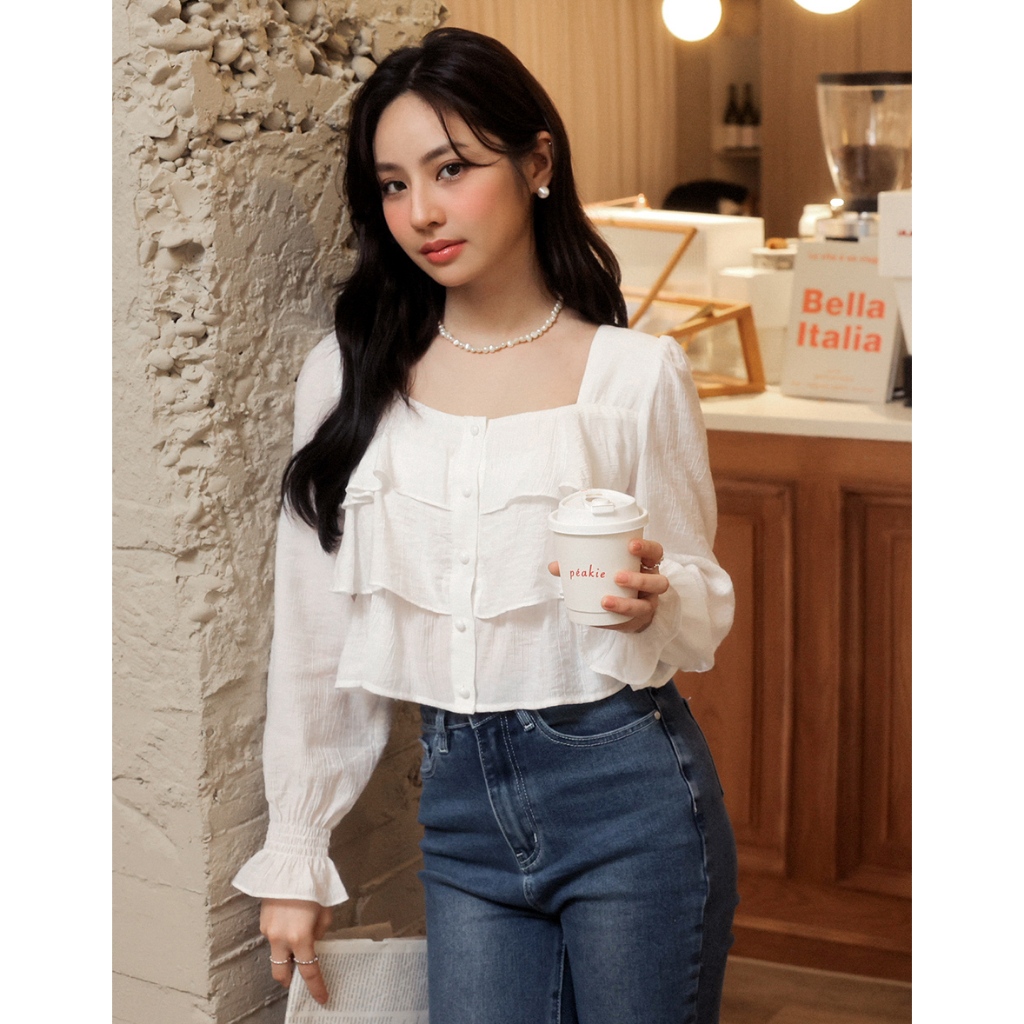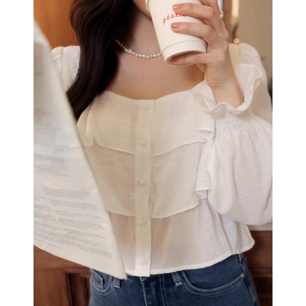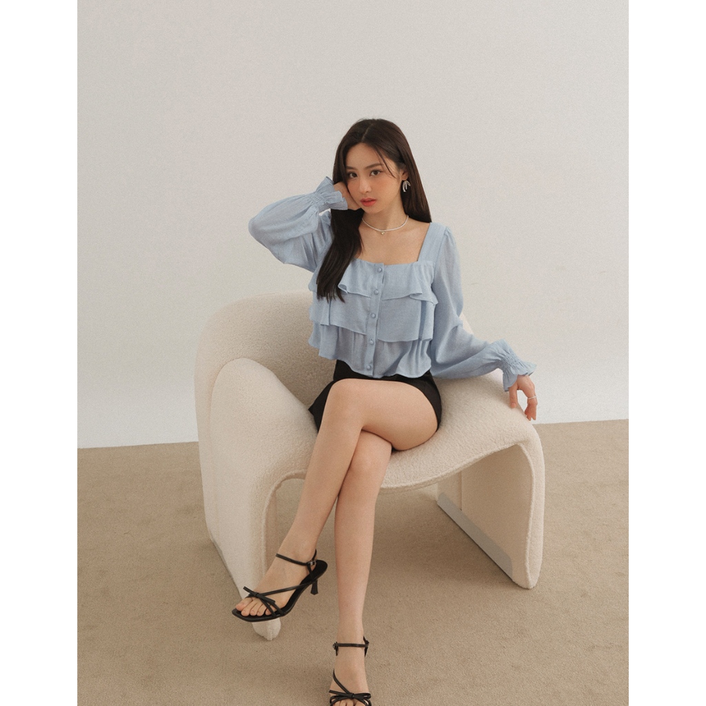 AIR SPACE LADY 層次感荷葉喇叭袖上衣(白/藍) 女裝 現貨白,S|白,M|白,L|藍,S|藍,M|藍,LOthersAIR SPACE