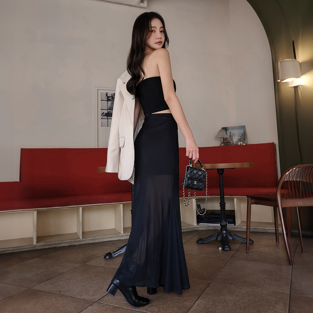 CHIC A SPACE 優雅透膚魚尾長裙(黑) 女裝 現貨黑,S|黑,M|黑,LAIR SPACE