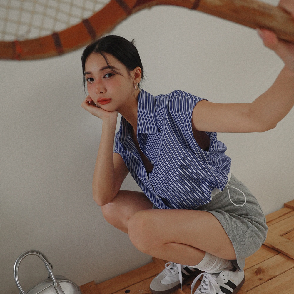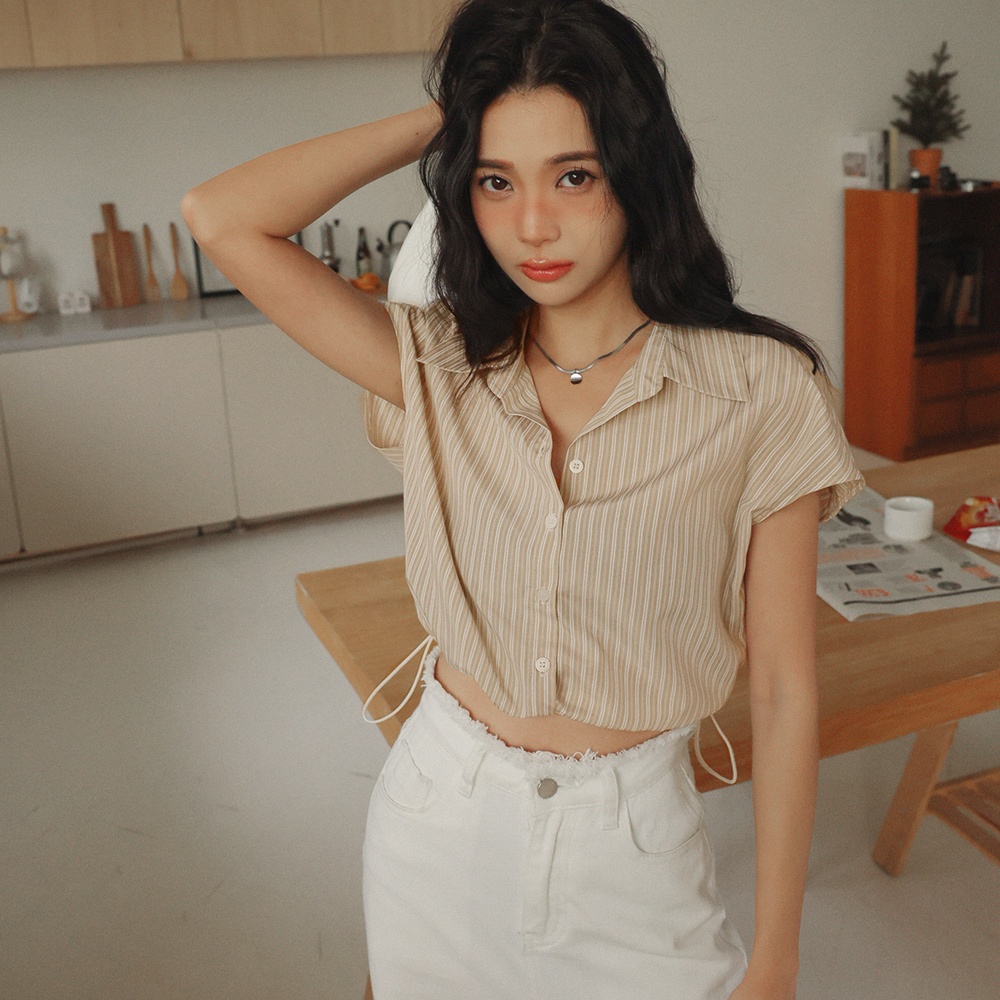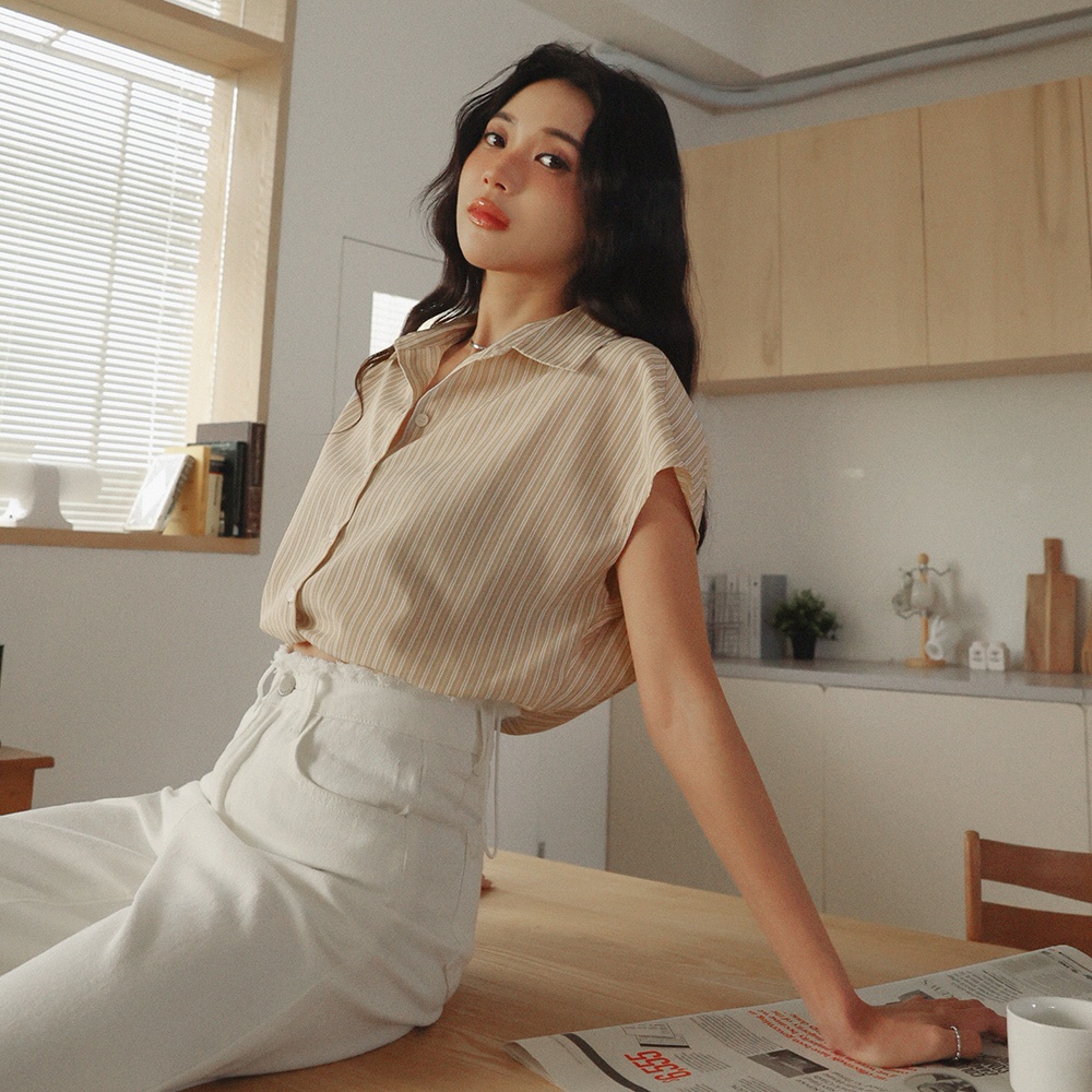 AIR SPACE LADY 知性直紋可調節法式袖襯衫(杏/深藍) 女裝 現貨杏,S|杏,M|杏,L|深藍,S|深藍,M|深藍,LShirts & BlousesAIR SPACE