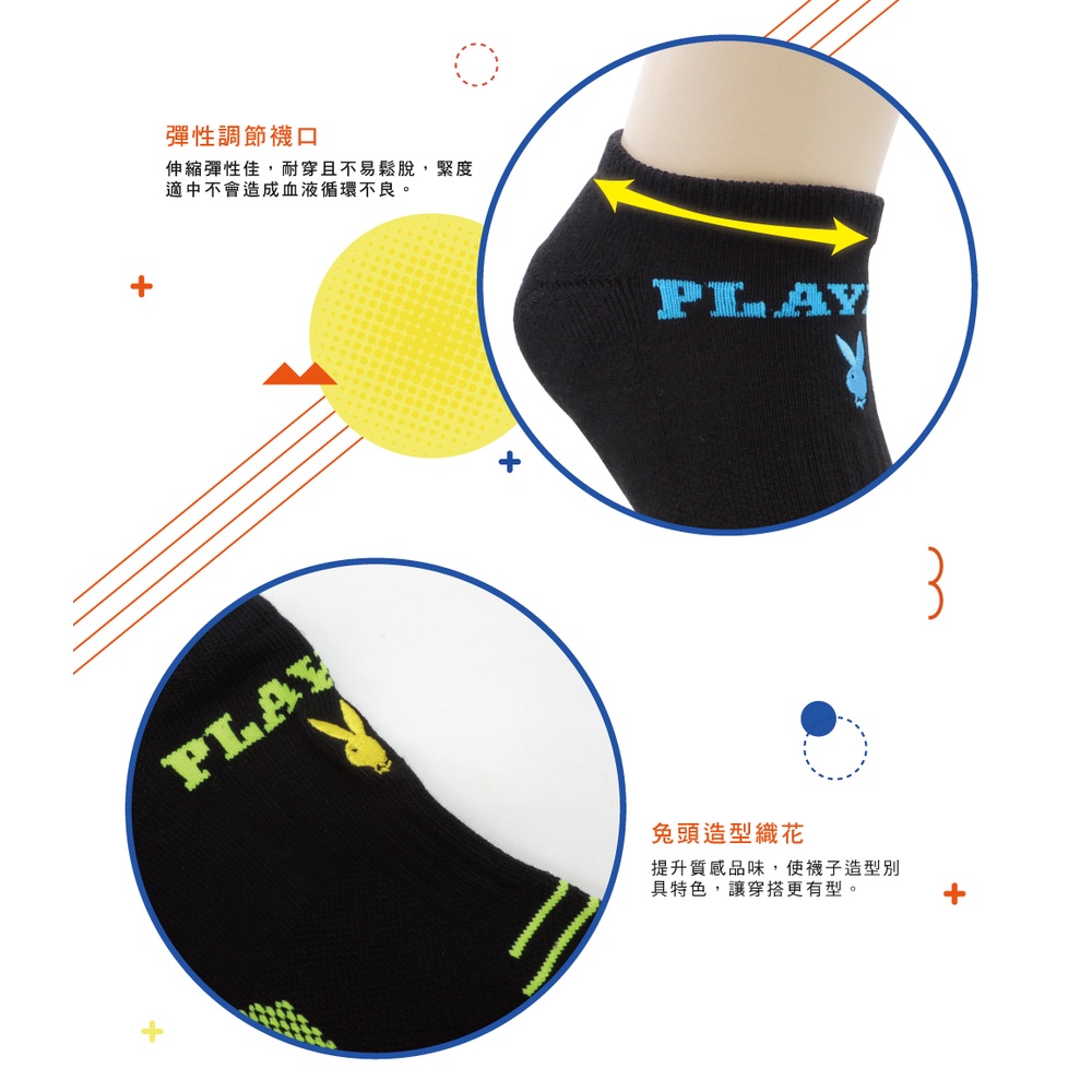 【PLAYBOY】螢光兔氣墊隱形運動襪│襪子|女襪│隱形│舒適運動│高含棉異味OUT藍/黑|桃紅/黑|黃/黑|橙/黑SocksArnold Palmer 雨傘 男內 襪子 官方旗艦店