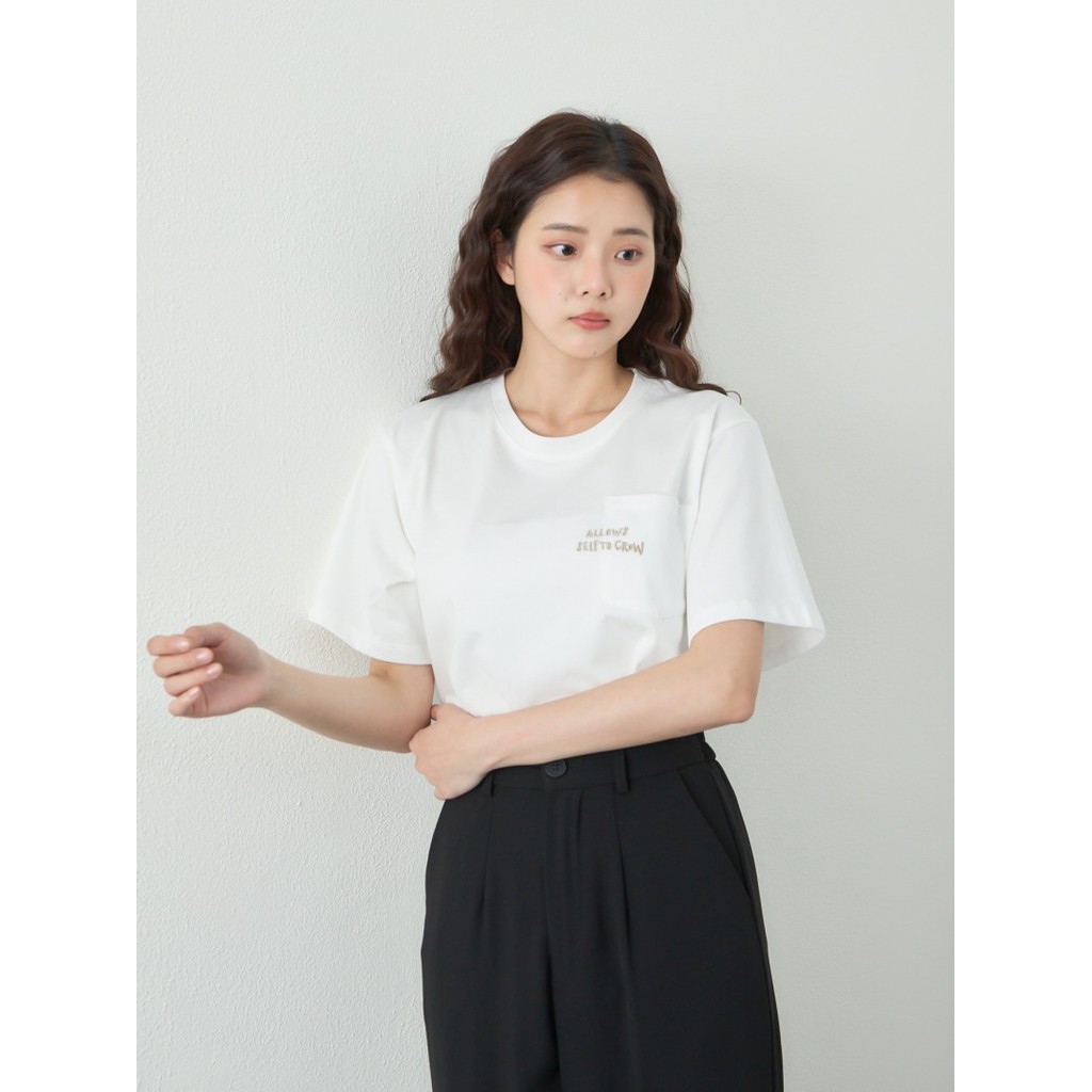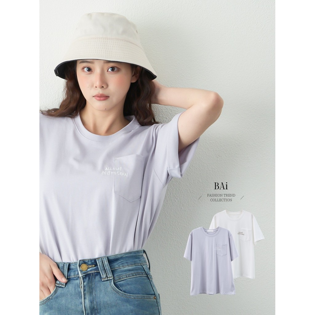 BAi白媽媽 口袋繡字短袖T恤/交界小刺繡設計棉質上衣-台灣現貨 隔日到貨【350080】白_微透(01)|紫(07)T-shirtsBAi白媽媽 品牌旗艦店
