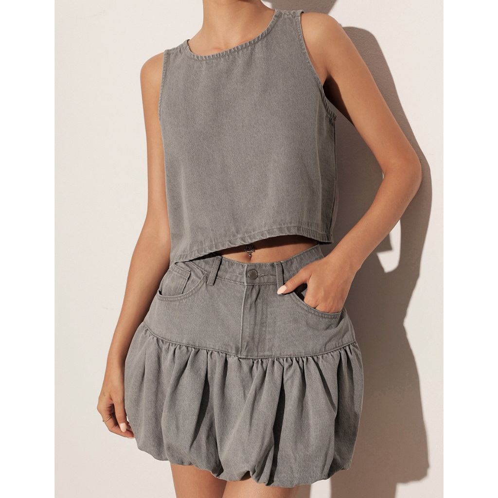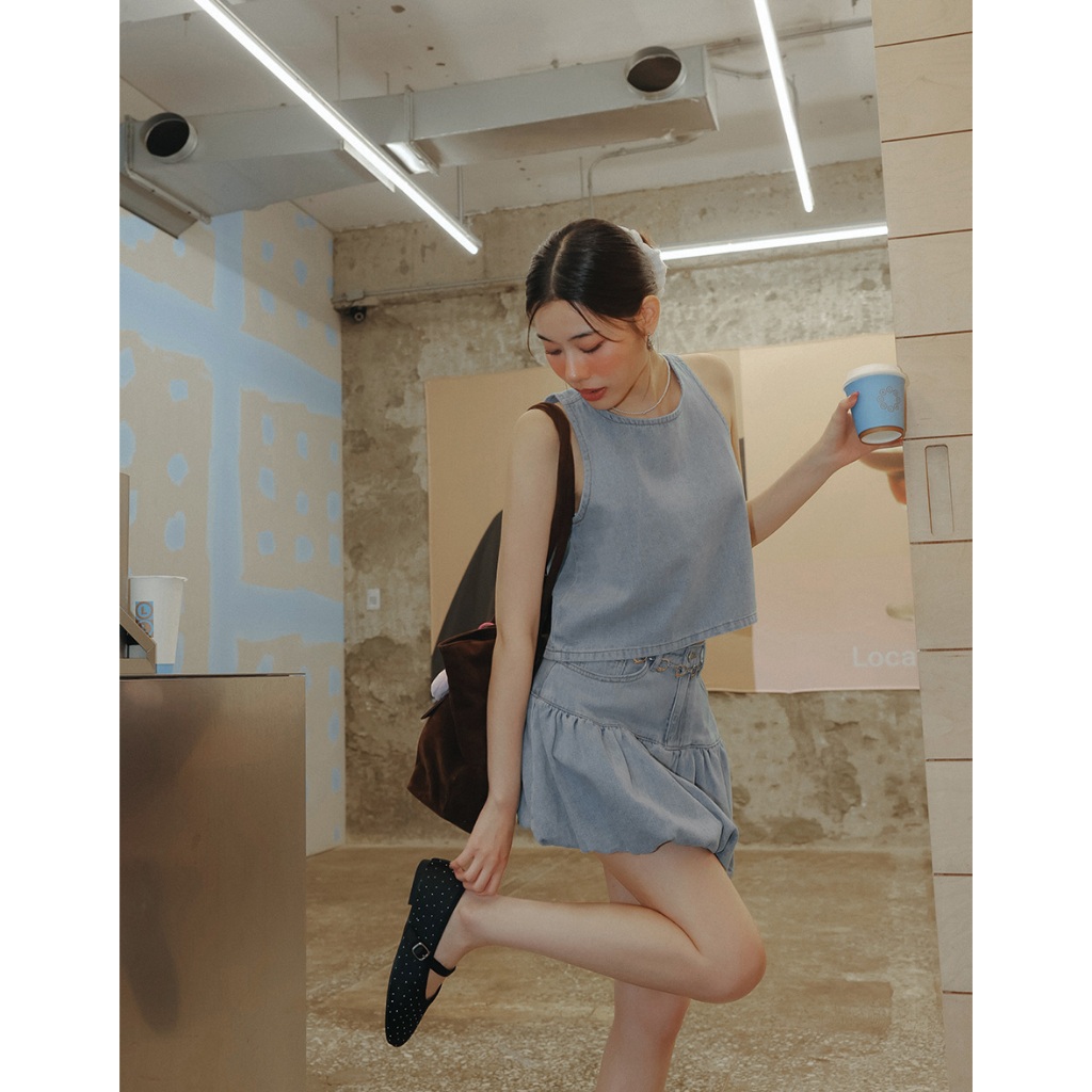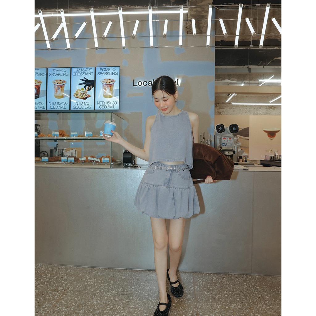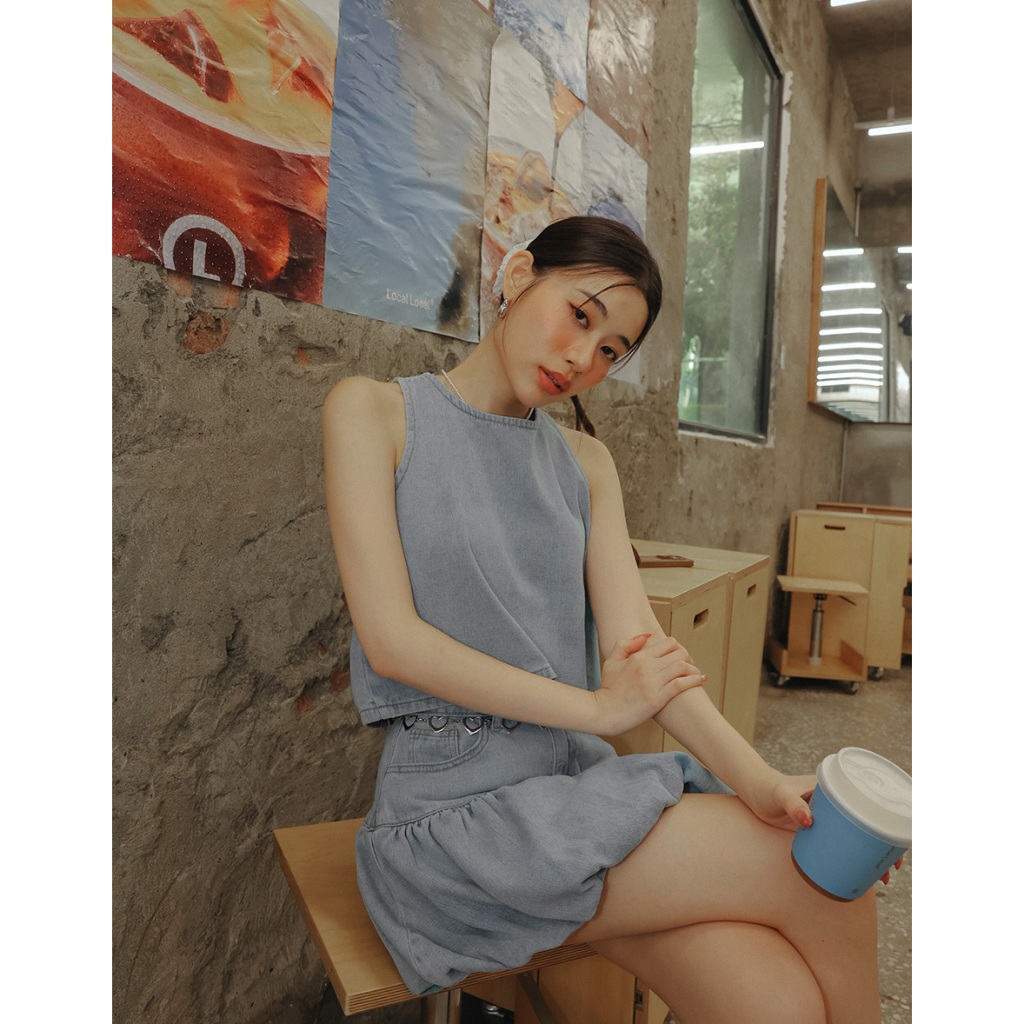 AIR SPACE LADY 牛仔短版背心(藍/淺灰) 女裝 現貨藍,S|藍,M|藍,L|淺灰,S|淺灰,M|淺灰,LTube TopsAIR SPACE