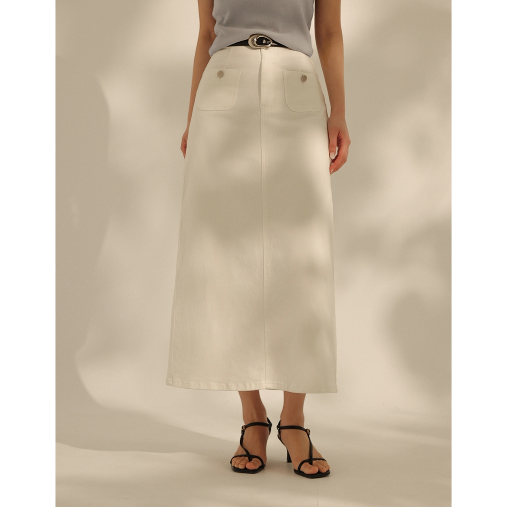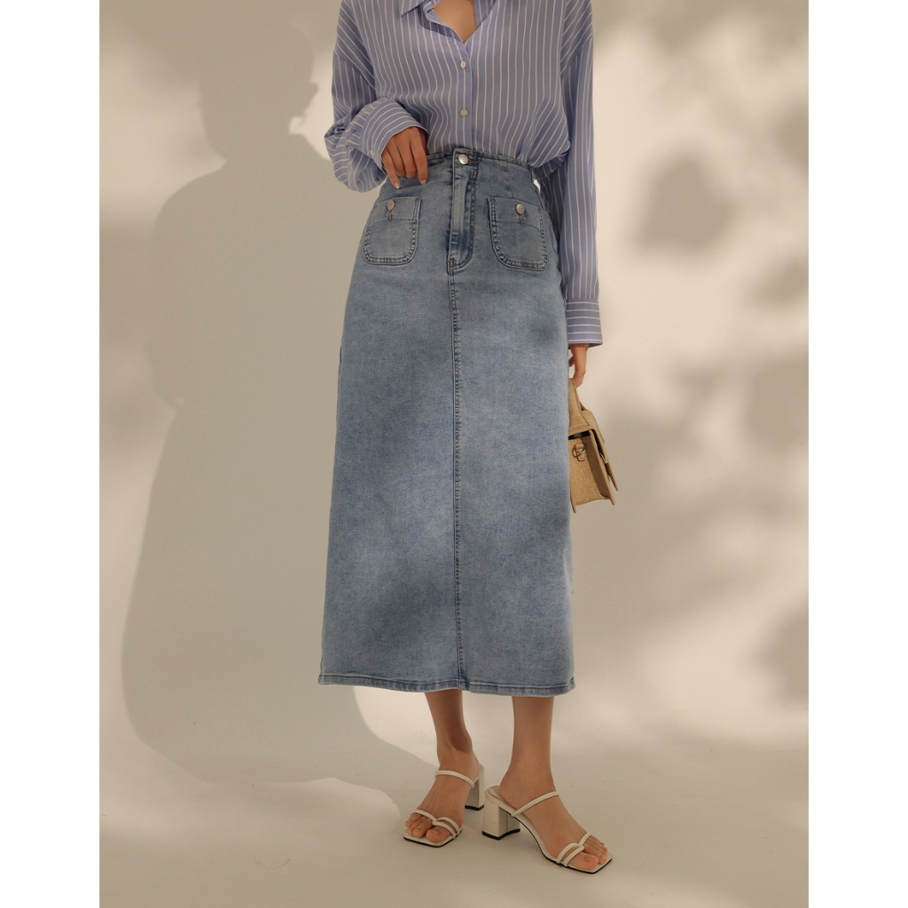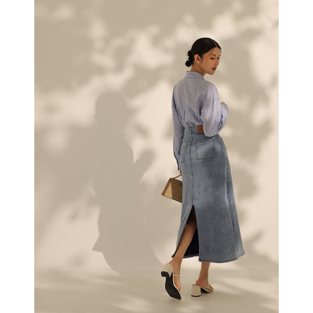 CHIC A SPACE 無腰頭開衩丹寧長裙(白/藍) 女裝 現貨白,S|白,M|白,L|藍,S|藍,M|藍,LAIR SPACE