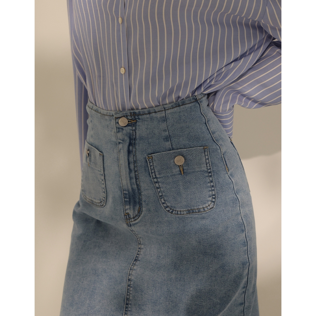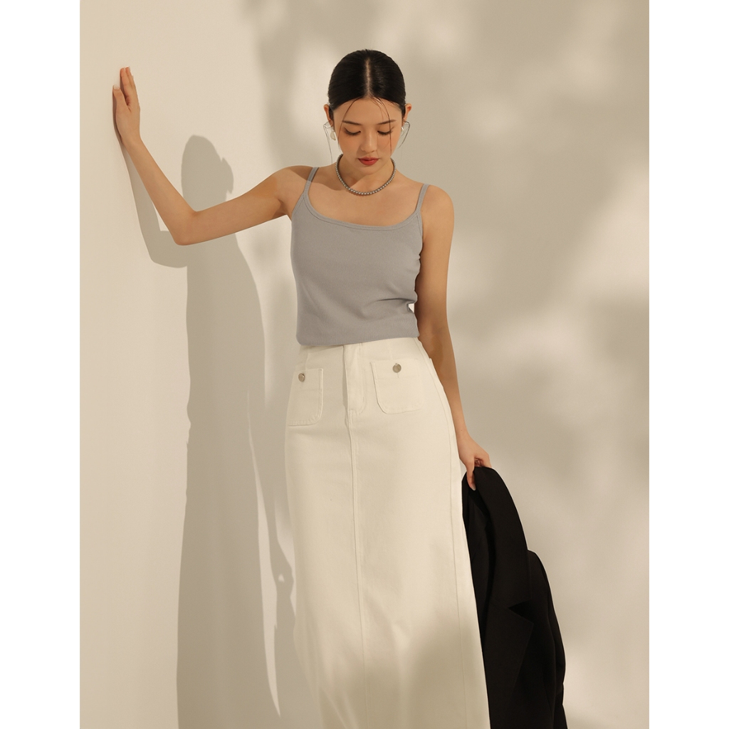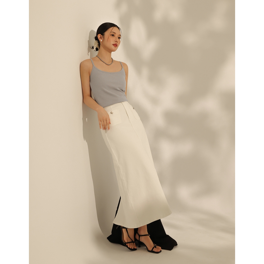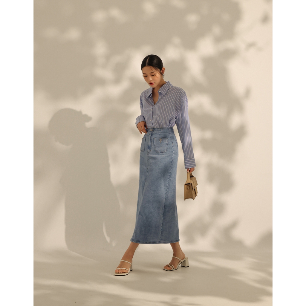 CHIC A SPACE 無腰頭開衩丹寧長裙(白/藍) 女裝 現貨白,S|白,M|白,L|藍,S|藍,M|藍,LAIR SPACE