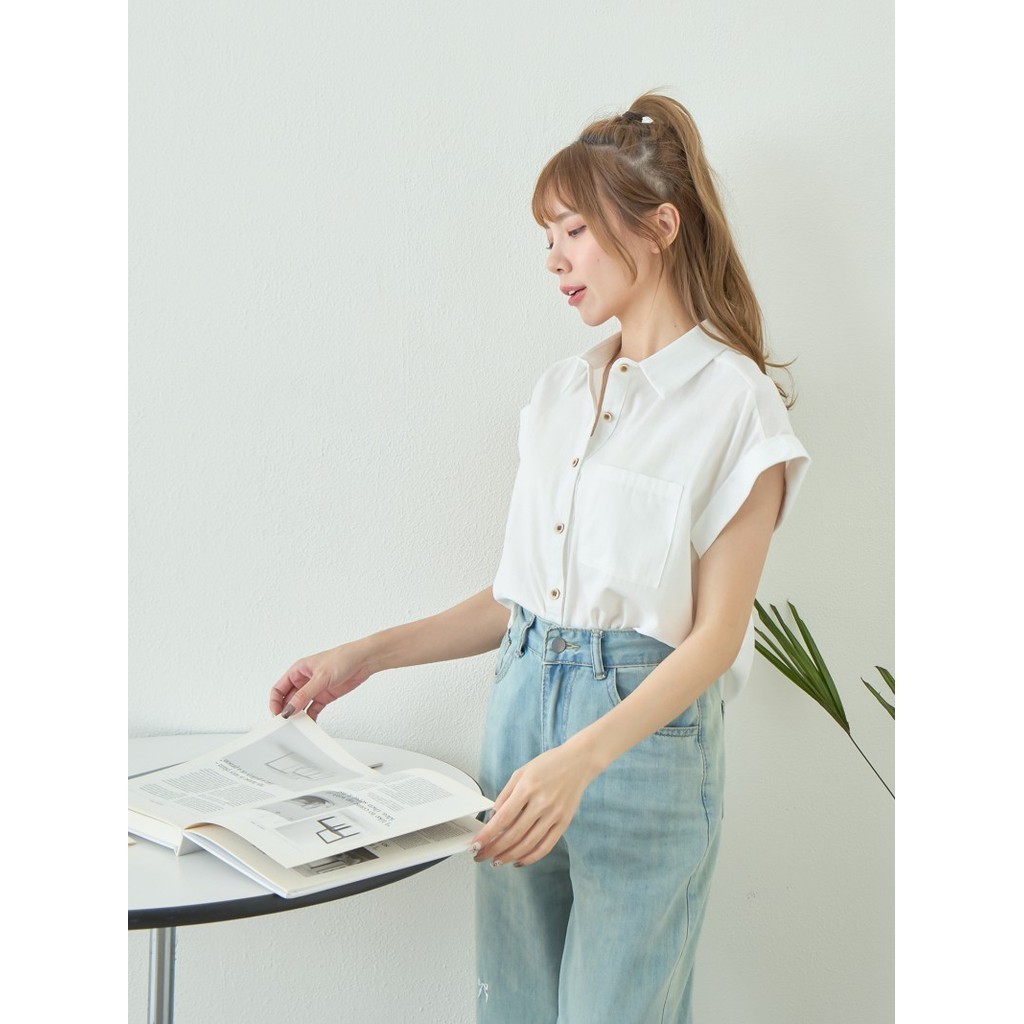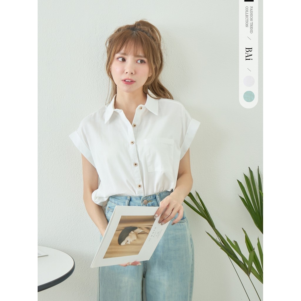 BAi白媽媽 反摺袖襯衫/翻領落肩飛袖排釦上衣-台灣現貨 隔日到貨【350459】白(01)|藍綠(06)Shirts & BlousesBAi白媽媽 品牌旗艦店