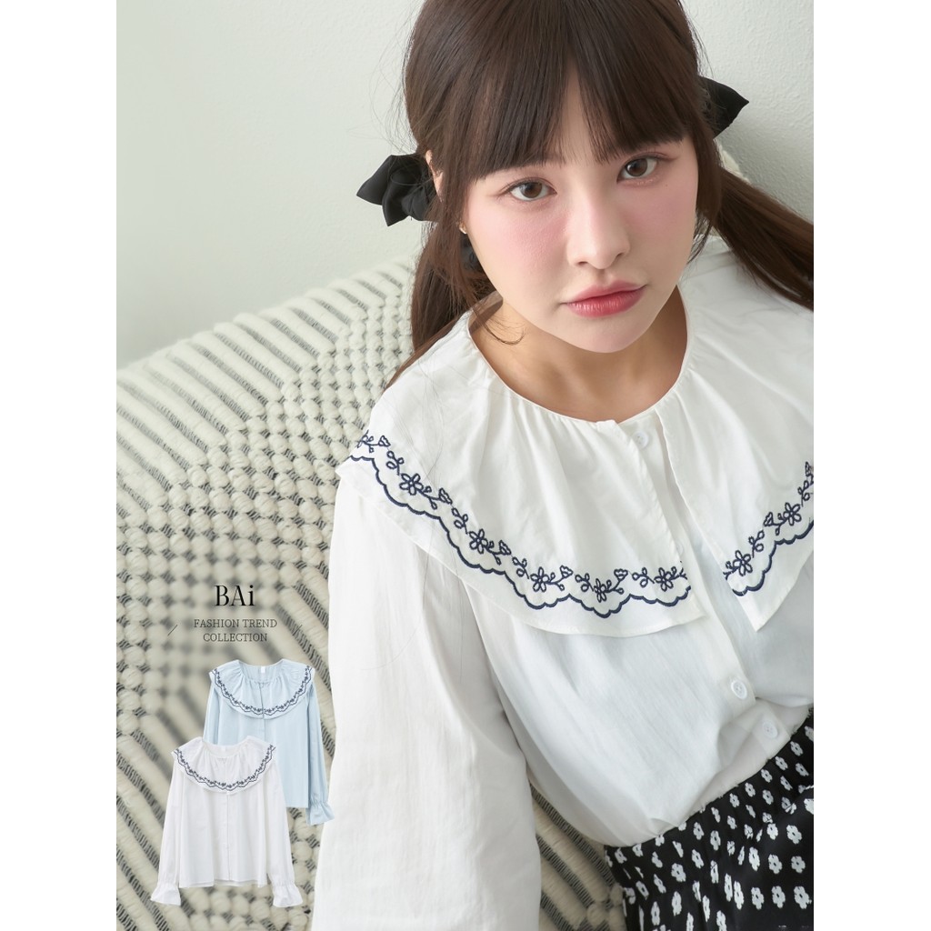 BAi白媽媽 繡圈領片開釦襯衫/刺繡圓片領長袖開衫-台灣現貨 隔日到貨【350068】白_透(01)|藍_微透(05)Shirts & BlousesBAi白媽媽 品牌旗艦店