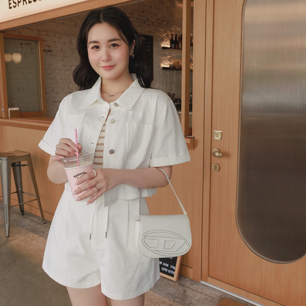 AIR SPACE PLUS 厚磅牛仔襯衫外套(白/卡其綠) 女裝 現貨 大尺碼 中大尺碼