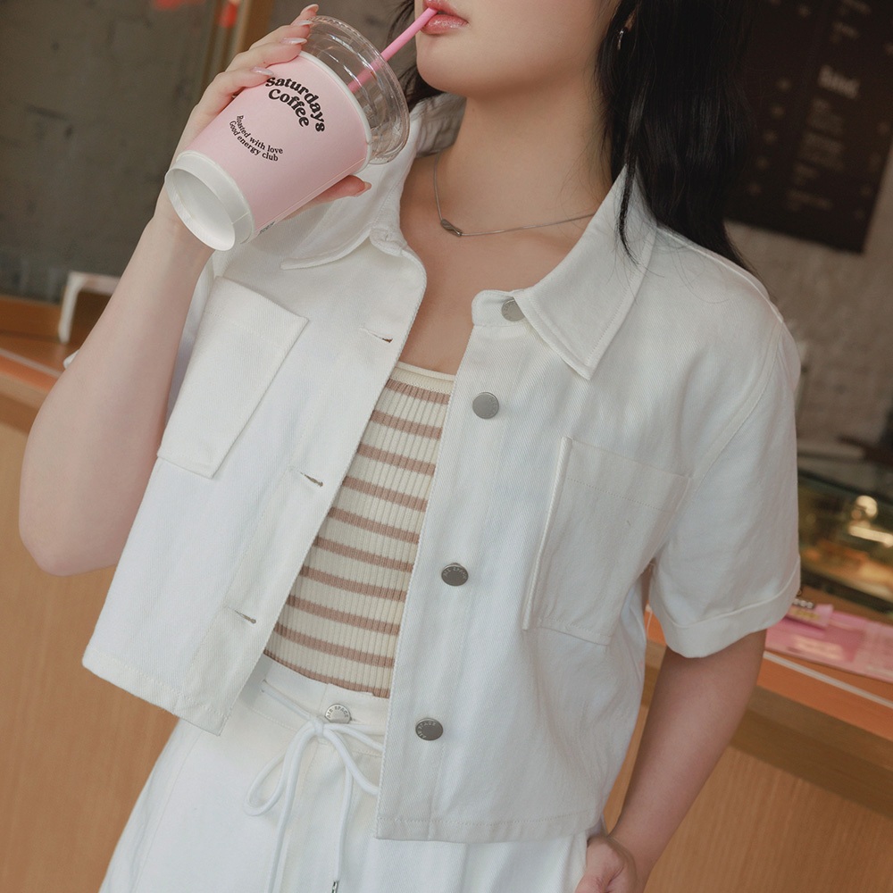 AIR SPACE PLUS 厚磅牛仔襯衫外套(白/卡其綠) 女裝 現貨 大尺碼 中大尺碼白,XL|白,2XL|白,3XL|卡其綠,XL|卡其綠,2XL|卡其綠,3XLJacketsAIR SPACE
