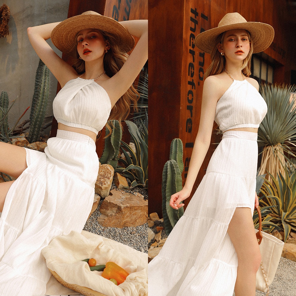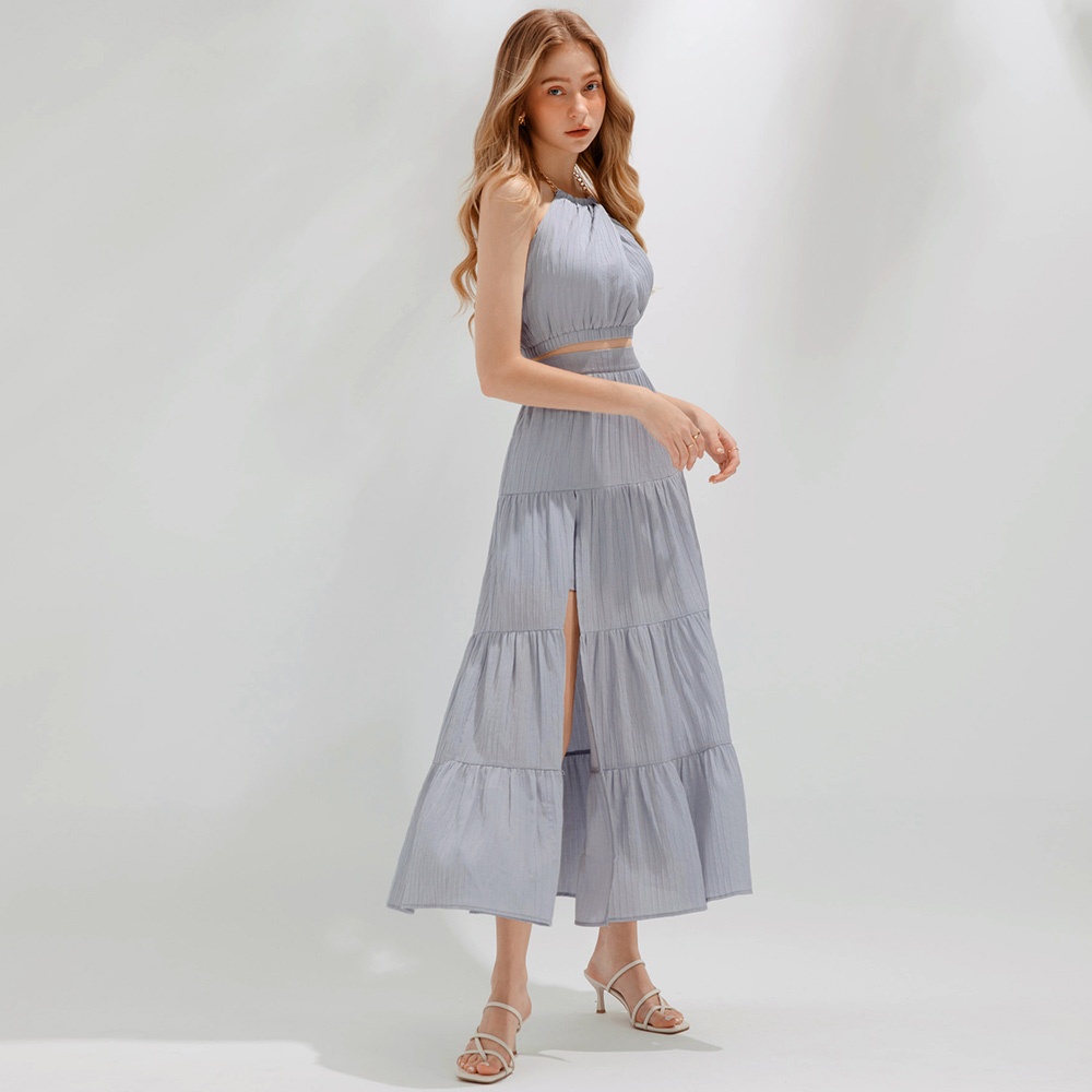 AIR SPACE 渡假風直紋蛋糕長裙(白/藍灰) 女裝 現貨白,S|白,M|白,L|藍灰,S|藍灰,M|藍灰,LAIR SPACE