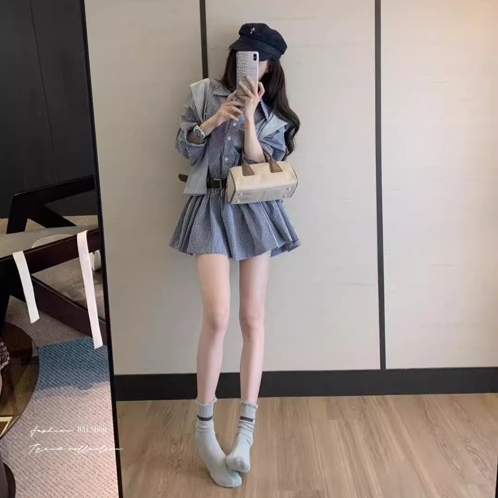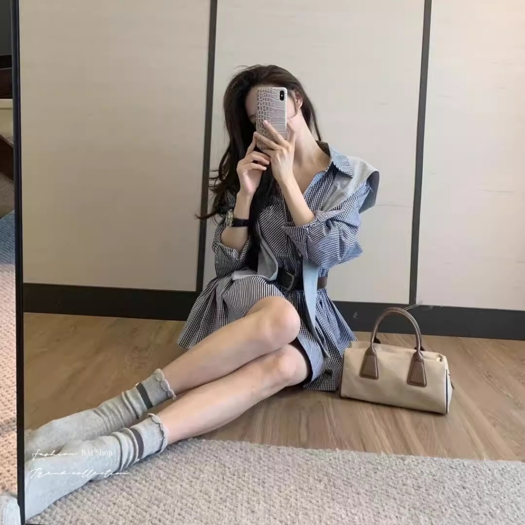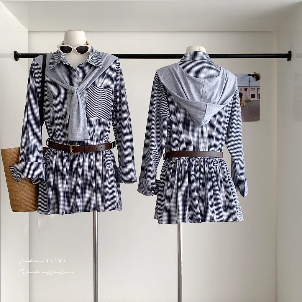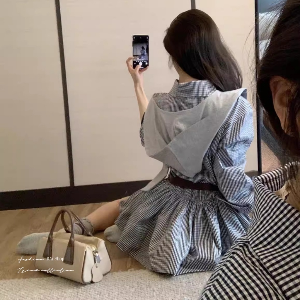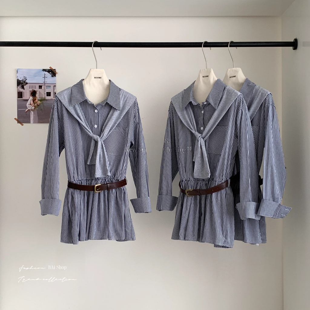 BAi白媽媽 三件套格紋洋裝/附腰帶與披肩-【350518】黑(02)Individual SetsBAi白媽媽 品牌旗艦店