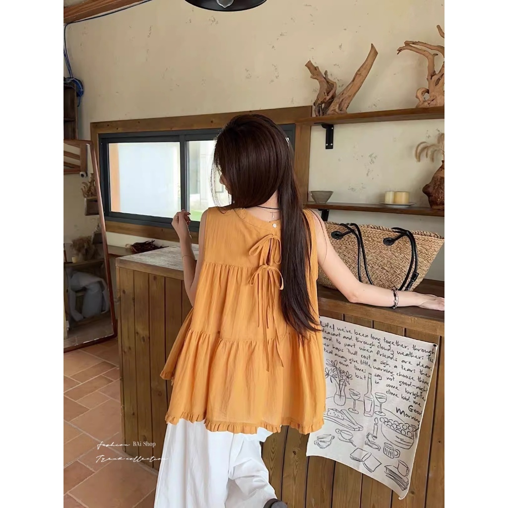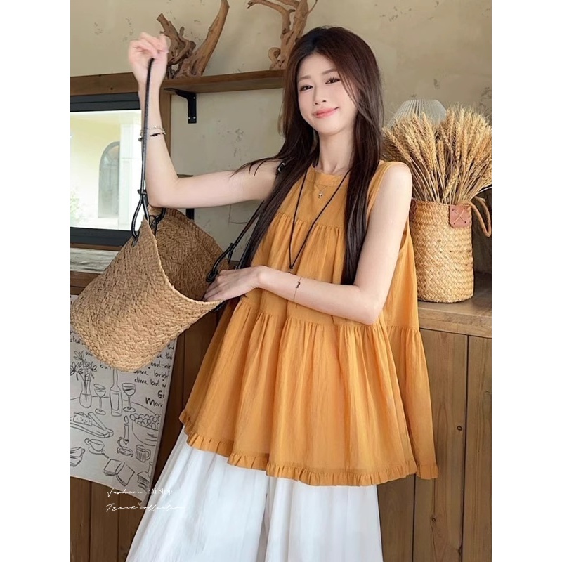 BAi白媽媽 木耳邊蛋糕背心/無袖娃娃裝上衣-台灣現貨 隔日到貨【350499】橘黃(04)Tanks & CamisolesBAi白媽媽 品牌旗艦店