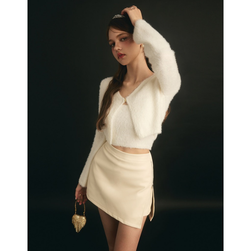 AIR SPACE PLUS 柔霧彈力皮質拉鍊褲裙(黑/白) 女裝 現貨 大尺碼 中大尺碼黑,XL|黑,2XL|黑,3XL|白,XL|白,2XL|白,3XLSkortsAIR SPACE