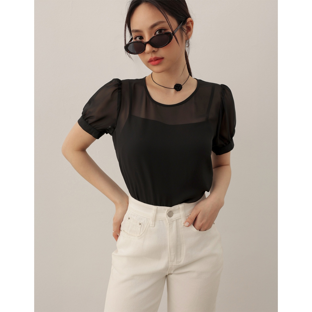 AIR SPACE LADY 法式透膚泡泡袖套裝(黑/白) 女裝 現貨黑,S|黑,M|黑,L|白,S|白,M|白,LIndividual SetsAIR SPACE