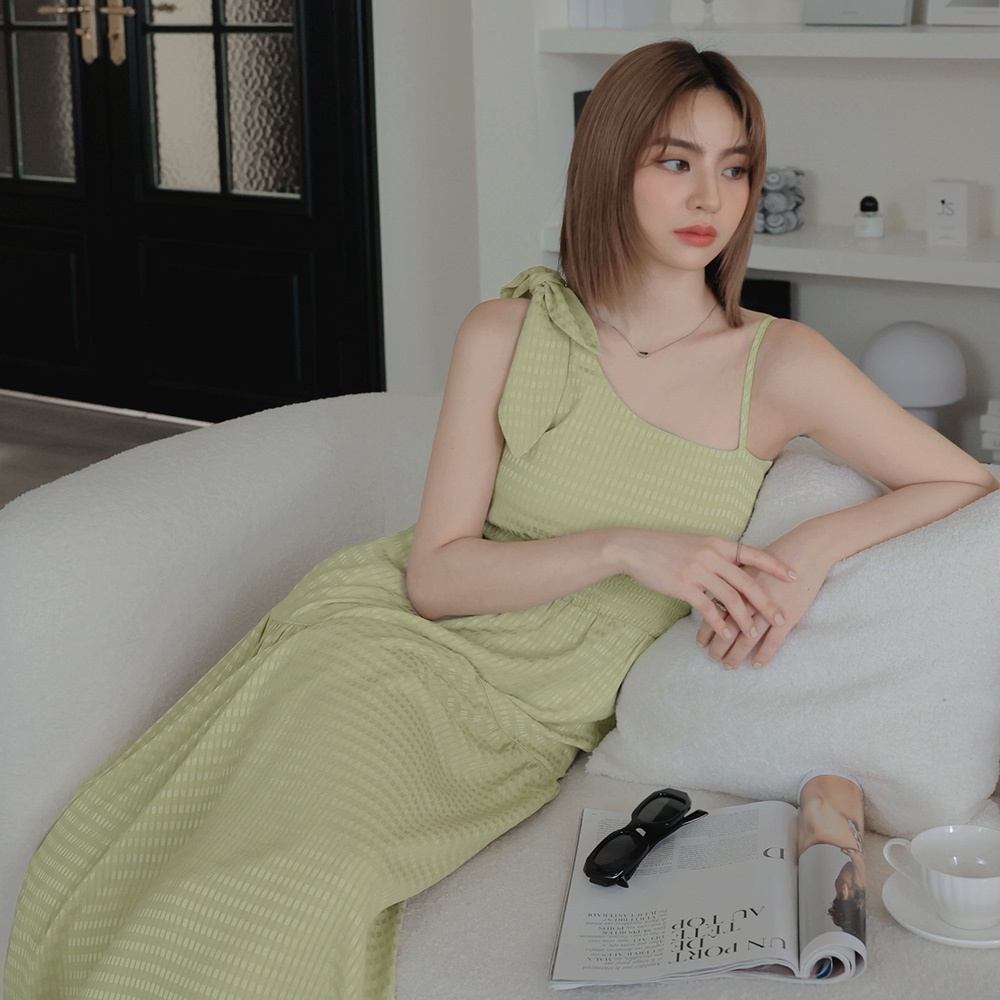 AIR SPACE LADY 海島渡假格紋綁帶長洋裝(白/綠) 女裝 現貨白,S|白,M|白,L|綠,S|綠,M|綠,LAIR SPACE