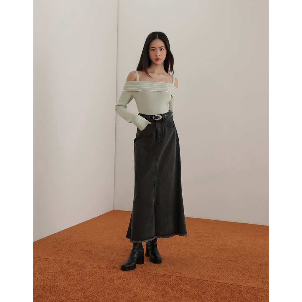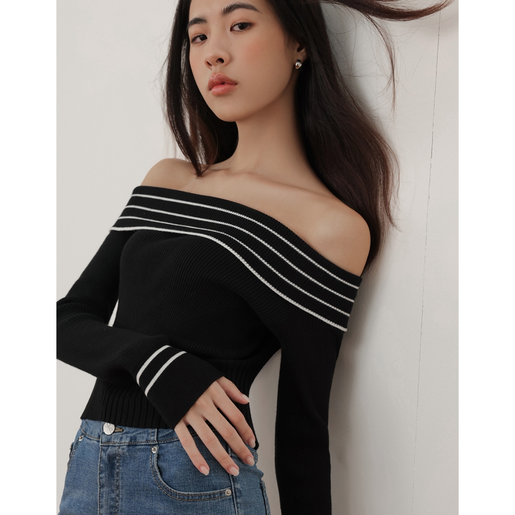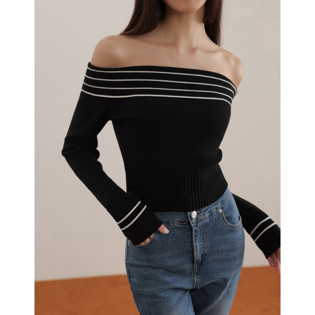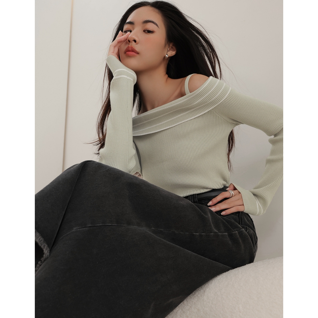 CHIC A SPACE 2WAY挖肩平口針織上衣(黑/綠) 女裝 現貨