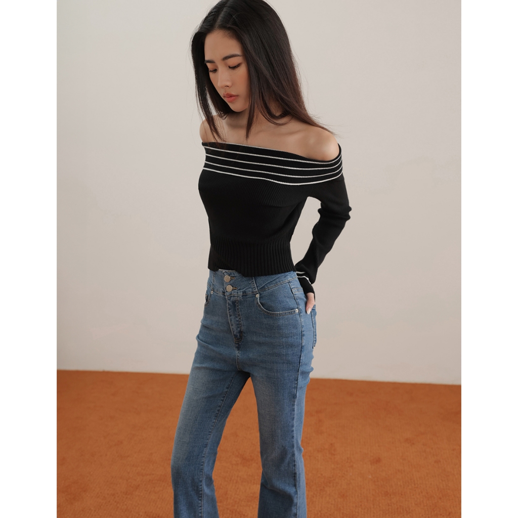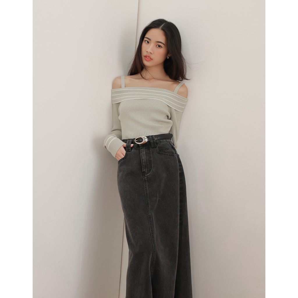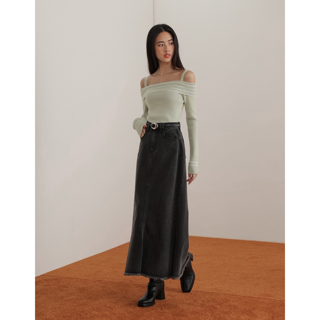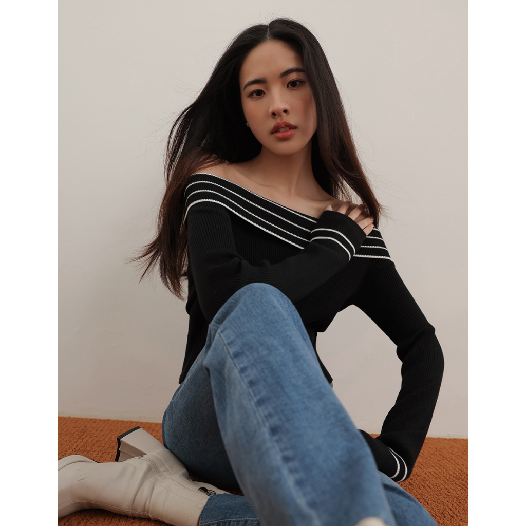 CHIC A SPACE 2WAY挖肩平口針織上衣(黑/綠) 女裝 現貨
